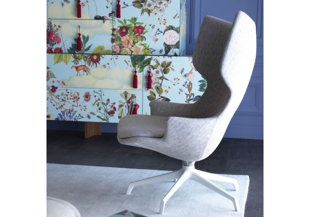 Lou Speak von Philippe Starck & Eugeni Quitllet für Driade entworfen, ist ein Sessel mit drehbarer Basis aus poliertem, weiß oder schwarz pulverbeschichtetem Aluminiumguss. Schale aus Polyurethanschaum mit interner Tragstruktur aus Stahlstangen. Fester Bezug aus Stoff oder Leder in verschiedenen Ausführungen. Nur für den internen Gebrauch.