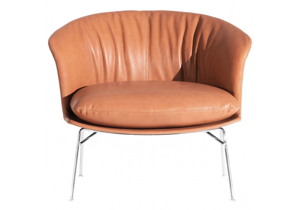 Moon von Ludovica + Roberto Palomba für Driade entworfen, ist ein Sessel mit tragender Struktur aus Stahldraht in glänzendem Chrom-Finish. Schale aus baydur600 mit nicht abnehmbarem Lederbezug. Sitzkissen mit abnehmbarem Lederbezug. Nur für den internen Gebrauch.