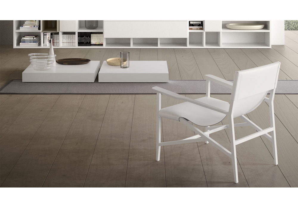 Isotta von Pianca entworfen, ist ein Sessel mit Struktur aus mattschwarz lackierter massiver Esche Ral 9017 oder aus mattweiß lackierter massiver Buche. Sitz ausschließlich in schwarzem und weißem Leder, passend zur Struktur.
