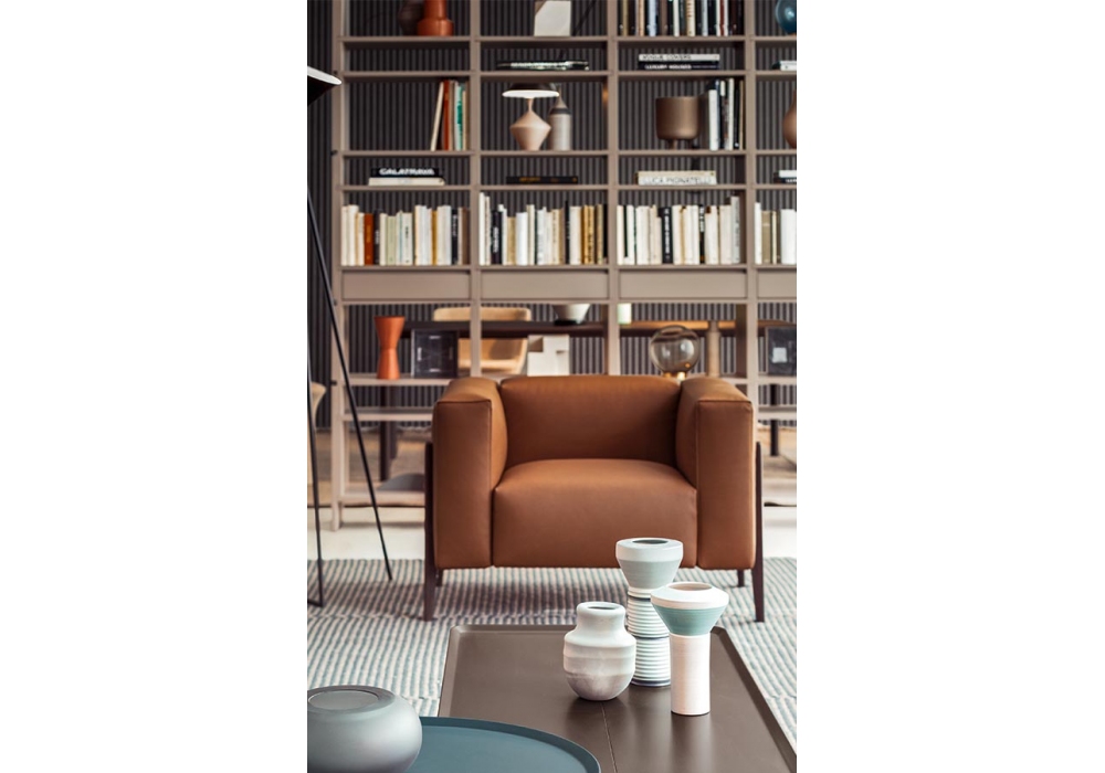 All-in von CMP Design für Pianca entworfen, ist ein Sessel mit Beinen aus massivem Nussbaum in Canaletto-Finish oder aus massiver Esche mit Essenza-Lack, offenporigem Mattlack und Hochglanzlack. Abnehmbarer Bezug aus Stoff, Leder oder Kunstleder.