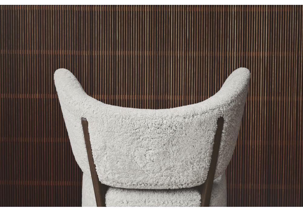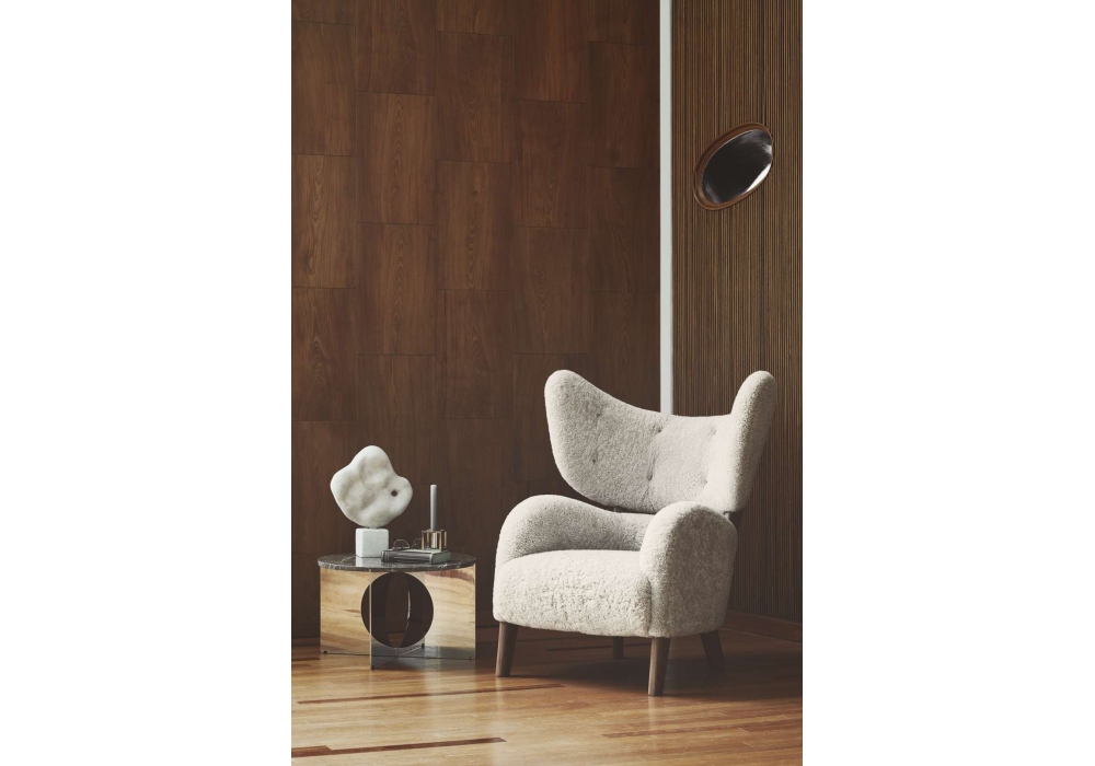 My Own Chair von Flemming Lassen für Audo Copenhagen entworfen, ist ein Sessel aus Leder oder Stoff und Beinen aus Walnuss oder naturfarbener oder dunkel gebeizter Eiche. Verfügbar in verschiedenen Polsterungen.