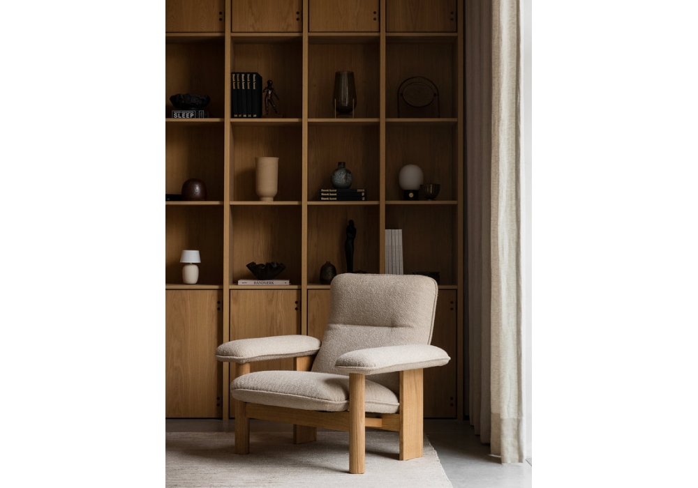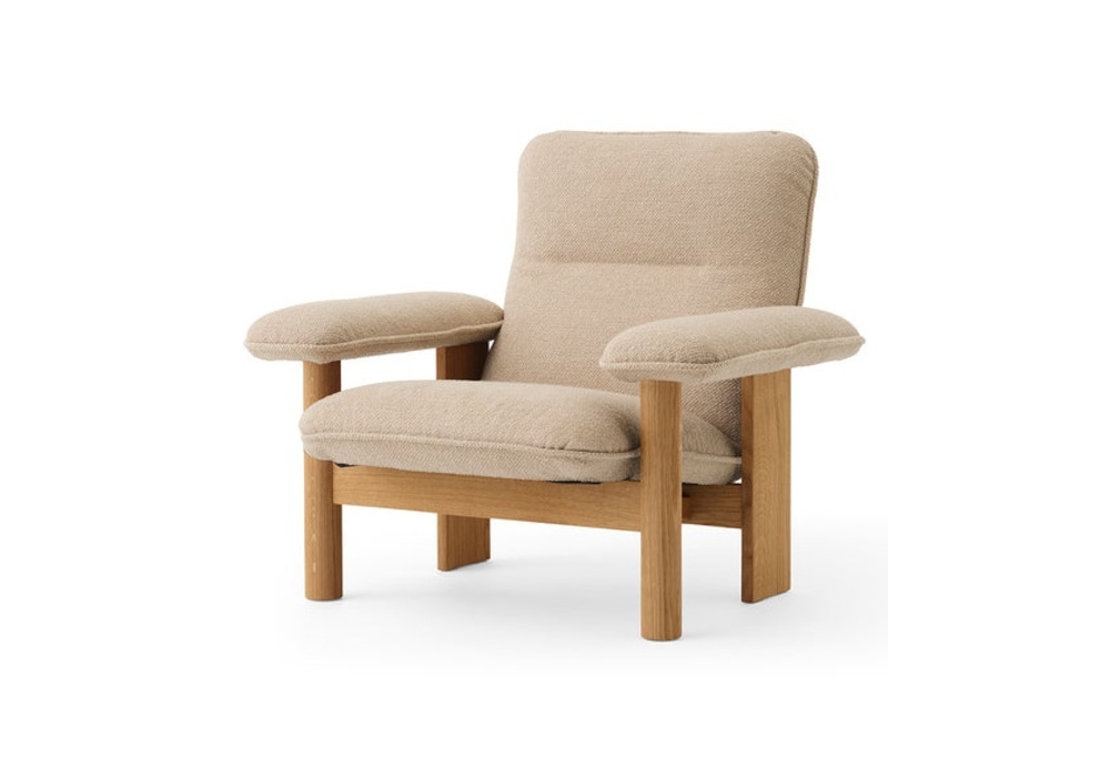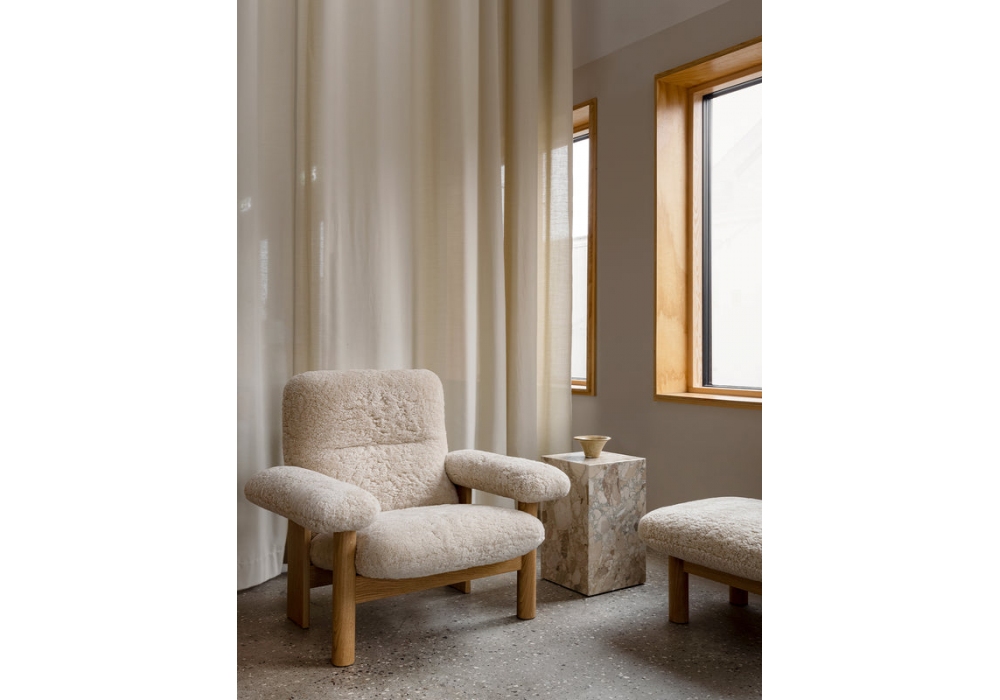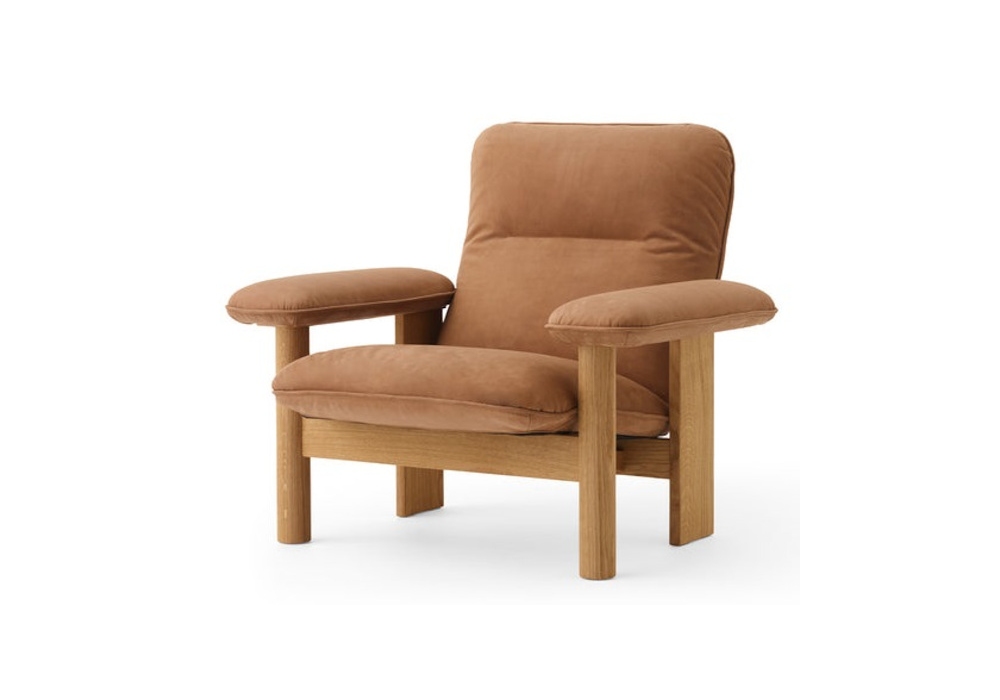 Brasilia von Anderssen & Voll für Audo Copenhagen entworfen, ist ein Sessel mit Struktur aus Eiche oder Nussbaum, Polsterung aus Leder oder Schaffell. Erhältlich in verschiedenen Ausführungen.
