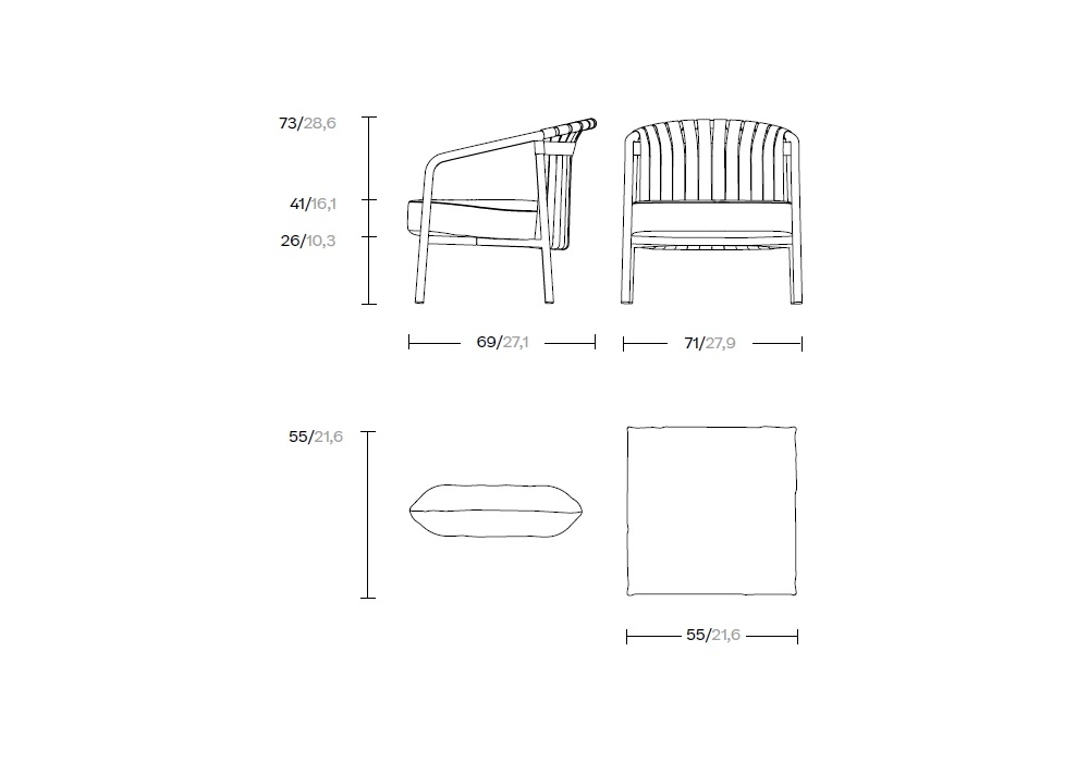 Arc von Kettal Studio ist ein Clubsessel mit einer Struktur aus lackiertem Aluminiumrohr. Die Kissen sind gepolstert und mit Stoff bezogen. Arc ist in verschiedenen Ausführungen erhältlich.