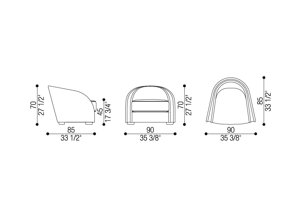 Carmen von Castello Lagravinese Studio für Opera Contemporary entworfen, ist ein gepolsterter Sessel mit Eschenholzfüßen und nicht abnehmbarer Bezug aus Leder oder Stoff.