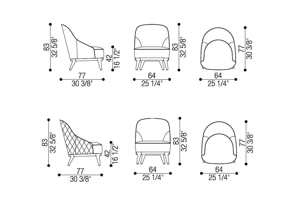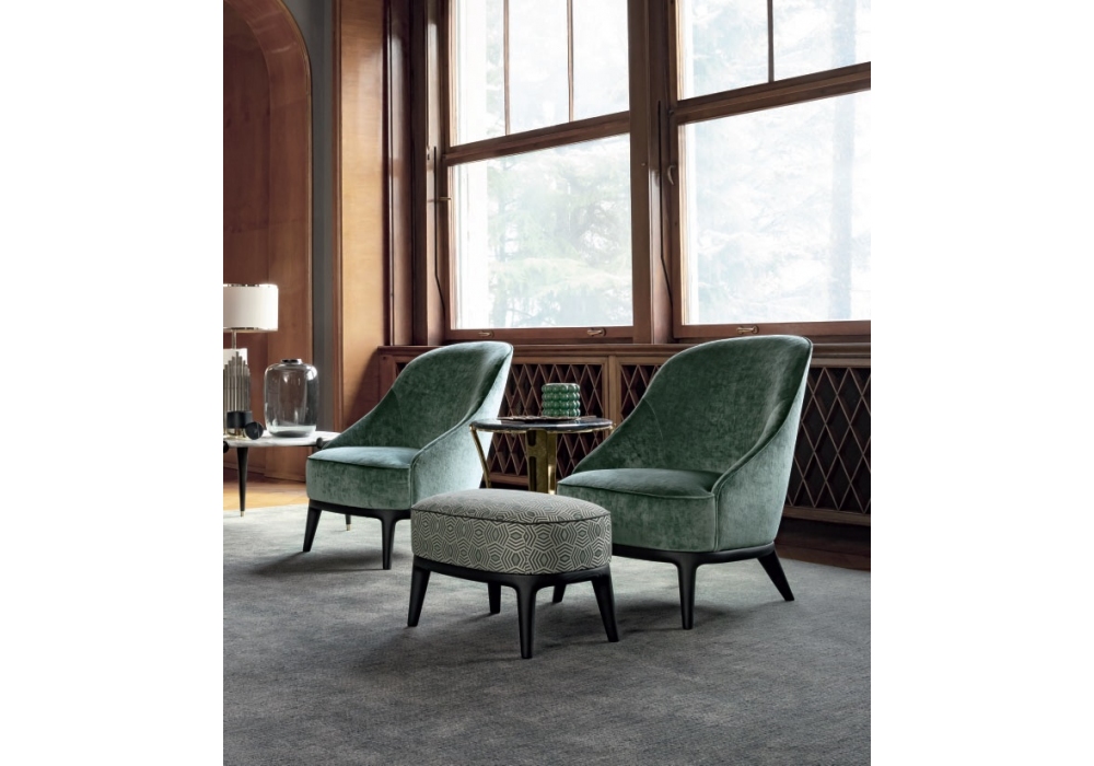 Sally von Castello Lagravinese Studio für Opera Contemporary entworfen, ist ein gepolsterter Sessel mit Holzstruktur und nicht abnehmbarer Bezug aus Stoff oder Leder.