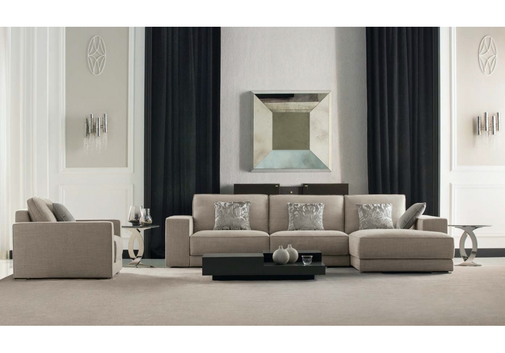 Walter von Opera Contemporary entworfen, ist ein Sessel mit Polsterung aus Polyurethanschaum in verschiedenen Dichten, Metallfüßen und nicht abnehmbarer Bezug aus Leder oder Stoff.