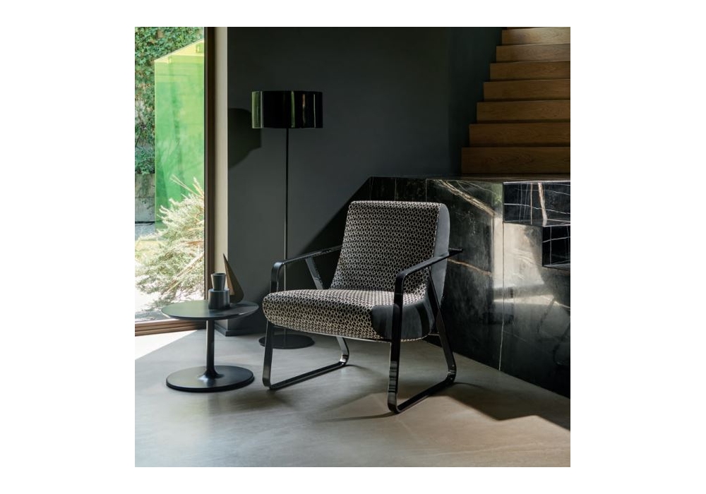 Moon von Matteo Ragni für Twils entworfen, ist ein Sessel mit Polsterung aus Polyurethanschaum, mit interner Struktur aus massivem Pappel- und Tannensperrholz. Der komplett abnehmbare Bezug ist in verschiedenen Stoffen und Farben erhältlich. Metallstruktur in schwarzem Nickel mit Einsatz an den Armlehnen in beigem Leder oder Testa di Moro.