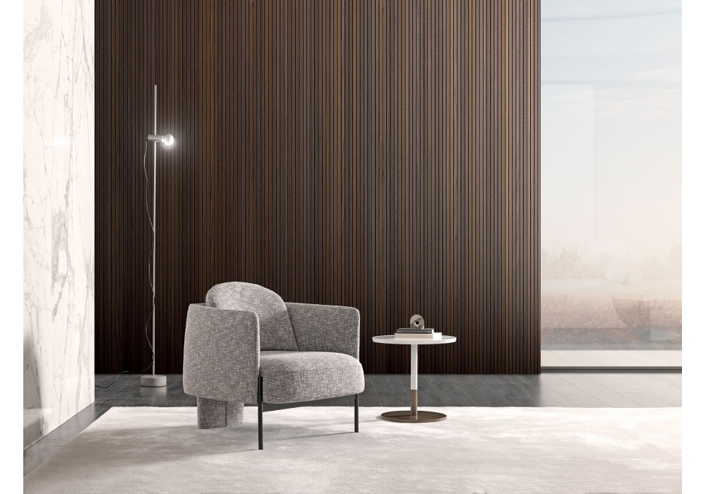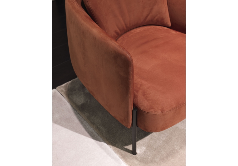 Virgin von Mauro Lipparini für MisuraEmme entworfen, ist ein Sessel aus schwarz lackiertem Metallgestell und Schale aus kaltgeschäumtem Polyurethan mit Stoff- oder Lederbezug. Verfügbar mit oder ohne Armlehnen.
