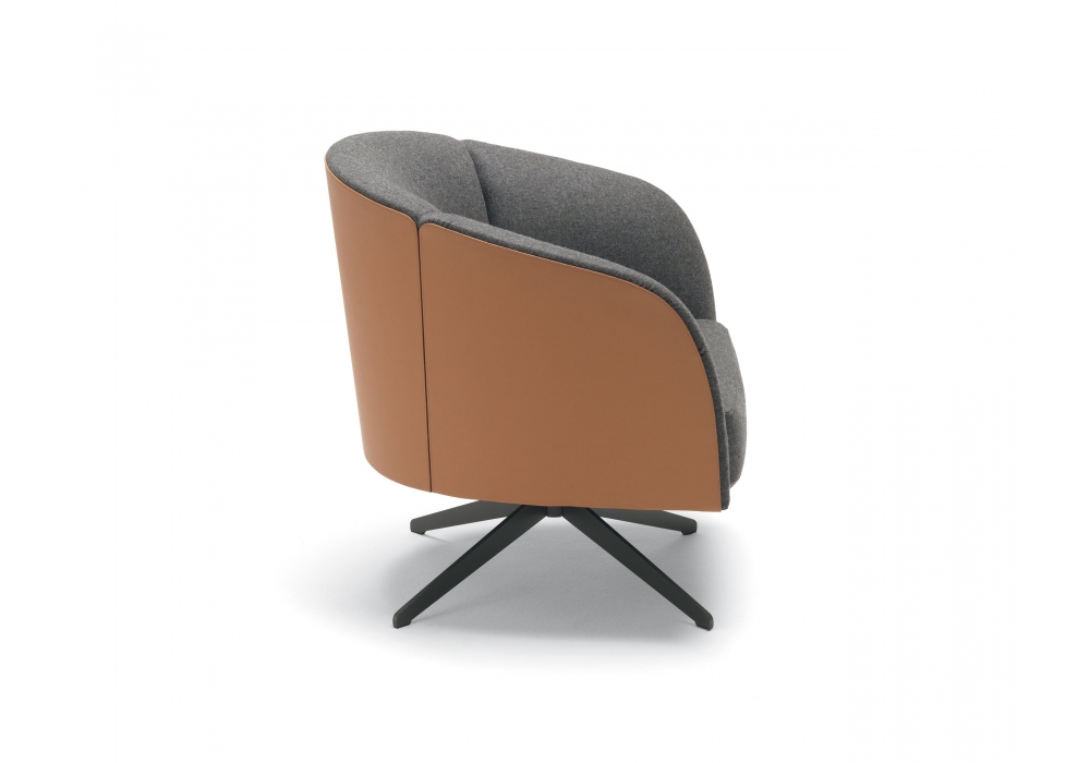 Violetta von Mauro Lipparini für MisuraEmme entworfen, ist ein Drehsessel mit Schale aus kaltgeschäumtem Polyurethan, Drehgestell aus Rotguss. Bezug aus Stoff, Kunstleder oder Leder, Rückenlehne des Sessels immer aus Leder. Auf Anfrage ist die zweifarbige Variante mit unterschiedlichen Oberflächen für die Vorder- und Rückenpolsterung erhältlich.