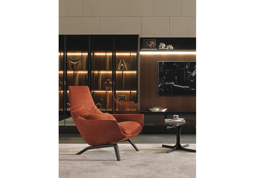 Ermes von Mauro Lipparini für MisuraEmme entworfen, ist ein Sessel mit festem Untergestell, handwerklich hergestellt aus gebeizter massiver Eiche und Schale aus kaltgeschäumtem Polyurethan mit Stoff- oder Lederbezug, abnehmbar durch Fachpersonal. Auf Wunsch ist es möglich, die Vorderseite des Sessels mit einem anderen Stoff zu beziehen als die Rückseite.
