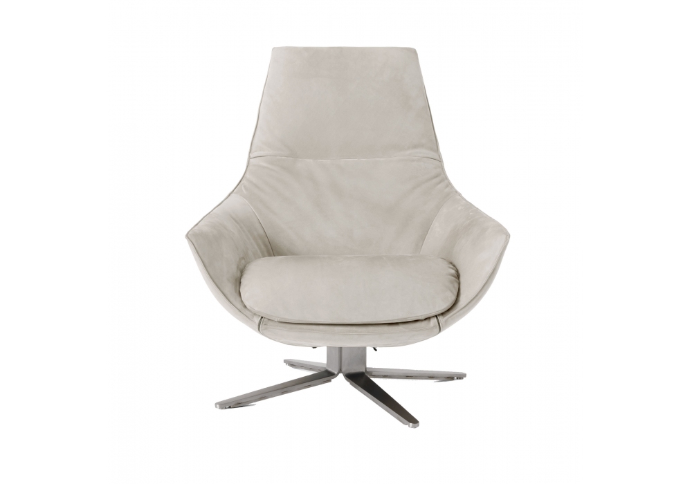 Ermes von Mauro Lipparini für MisuraEmme entworfen, ist ein Sessel mit drehbarer Basis aus metallgrau lackiertem Metall und einer Schale aus kaltgeschäumtem Polyurethan mit Stoff- oder Lederbezug, der von Fachpersonal abgenommen werden kann. Auf Wunsch ist es möglich, die Vorderseite des Sessels mit einem anderen Stoff zu beziehen als die Rückseite.