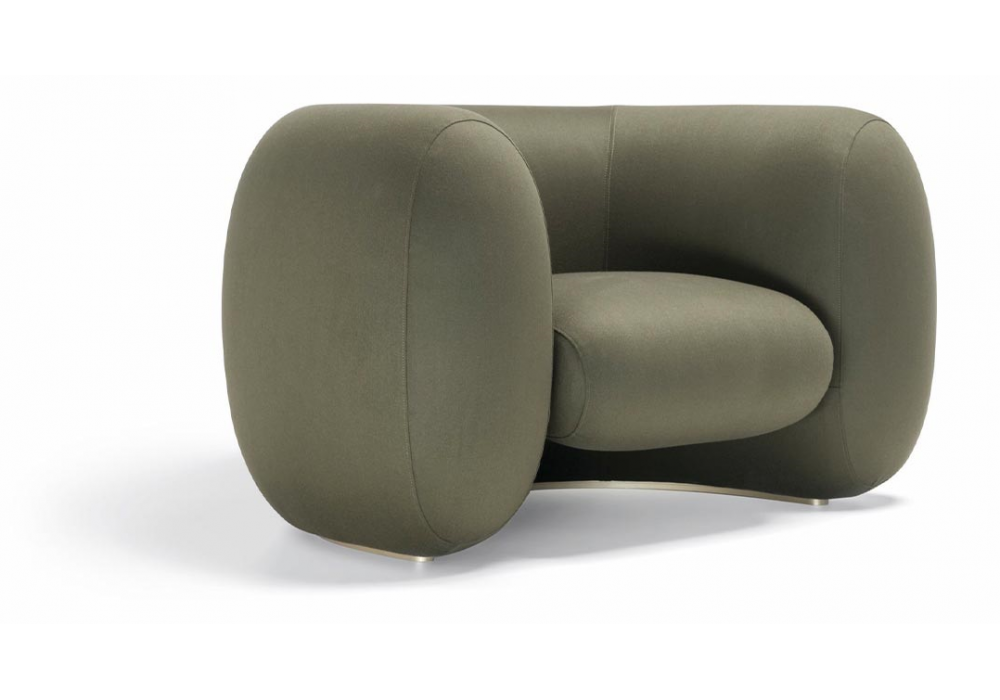 Cinnamon von Naoto Fukasawa für Molteni&C entworfen, ist ein Sessel mit Sockel mit umlaufendem Profil aus lackiertem Stahl. Höhenverstellbare rutschfeste Kunststoffspitzen. Struktur aus kaltgeschäumtem, flexiblem Polyurethan und Stoffbezug.