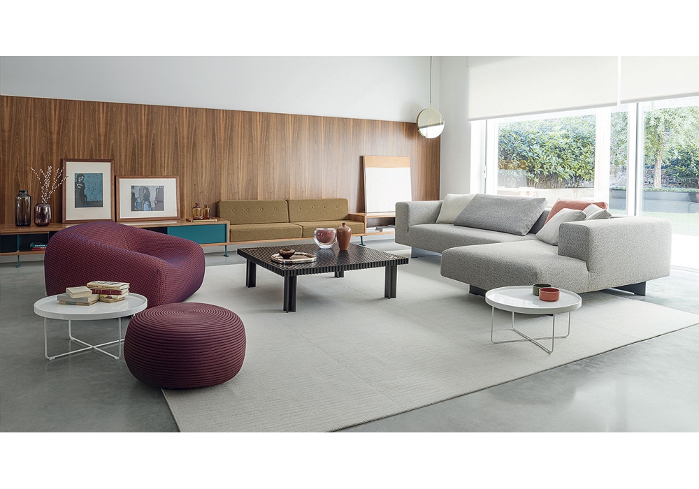 Smile von Francesco Rota für Paola Lenti entworfen, ist ein Sessel mit Untergestell aus thermogeformtem Kunststoffmaterial, komplett mit Spitzen, Polsterung aus unverformbarem, kaltgeschäumtem Polyurethan mit Holzeinsatz. Abnehmbarer Bezug in verschiedenen Stoffen und Farben erhältlich. Die Basis ist mit Griffen ausgestattet, um das Bewegen zu erleichtern.
