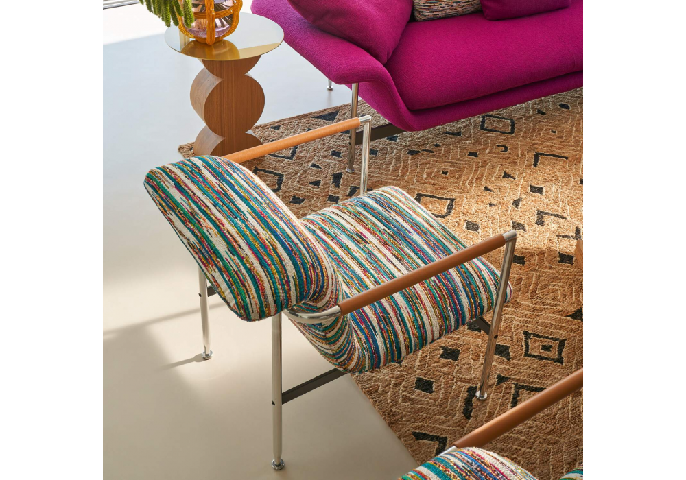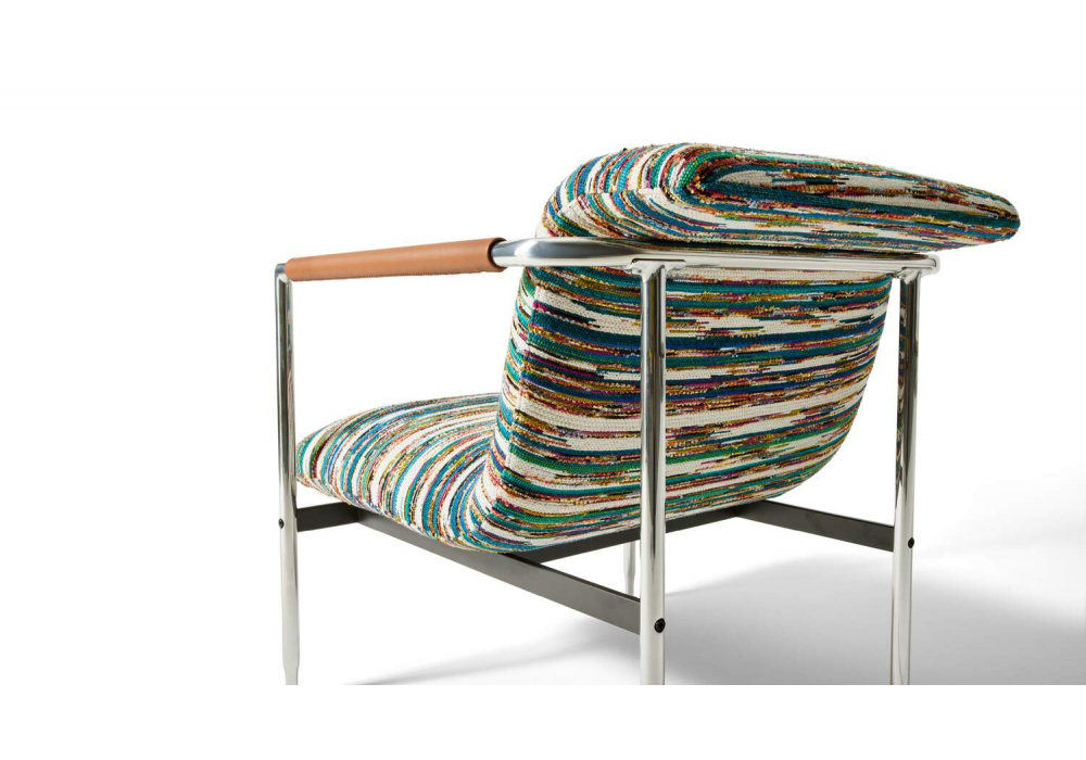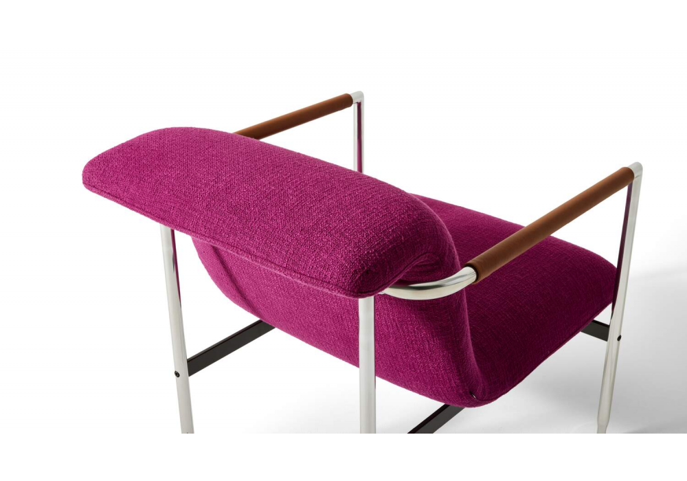 Esosoft von Antonio Citterio für Cassina entworfen, ist ein Sessel mit Gestell aus matt anthrazit lackiertem Metall, Röhrenstruktur und Stoffbezug. Polsterung aus Polyurethanschaum mit einem Anteil biologischen Ursprungs und recycelter PET-Watte. Armlehnen aus Aluminium mit Leder bezogen, mit Handnähten.