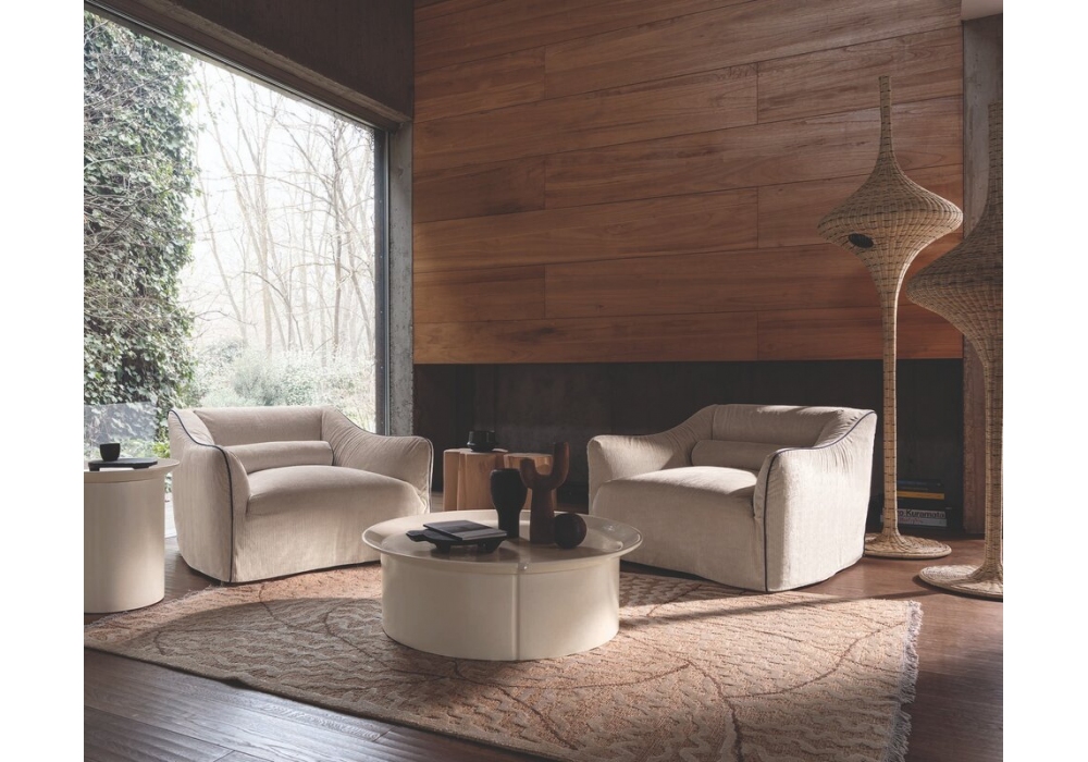 Saia von David Lopez Quincoces für Gervasoni entworfen, ist ein Sessel mit Polyurethan-Polsterung in verschiedenen Dichten und Sitz mit Taschenfederkern. Abnehmbare Bezug mit Paspelierung.