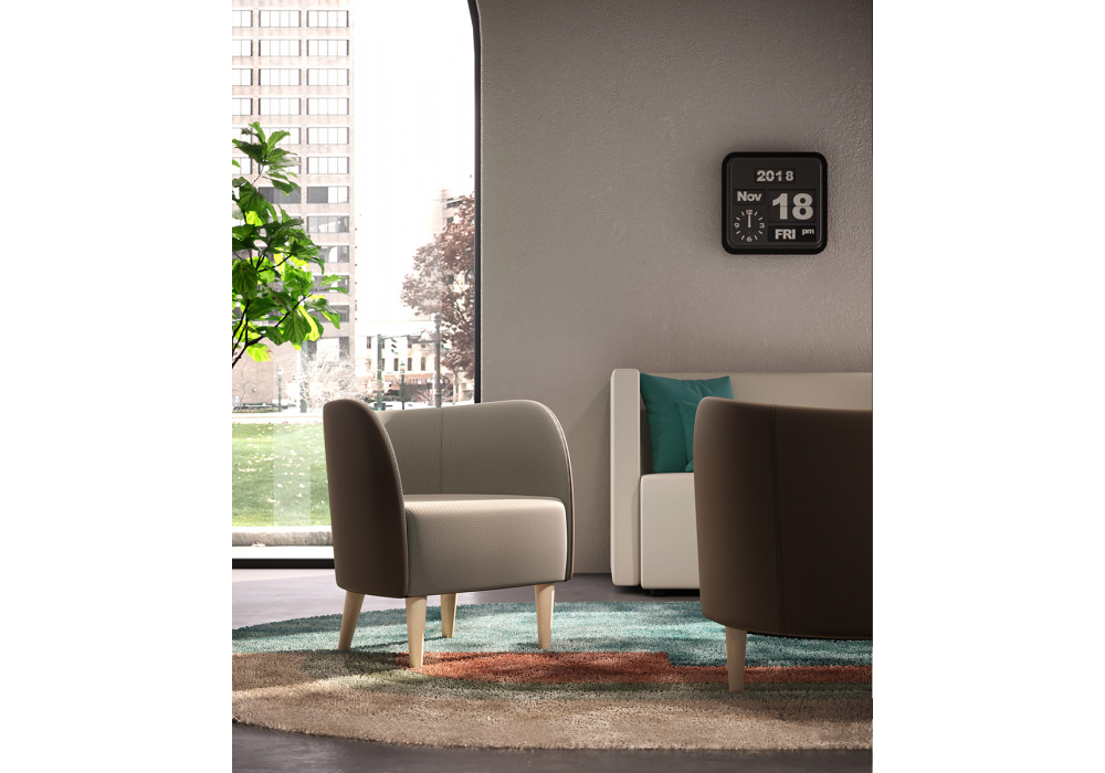 Round von R&D Sitlosophy für Sitlosophy entworfen, ist ein Sessel mit Struktur und Armlehnen aus gebogenem Sperrholz, Polsterung aus flexiblem expandiertem Polyurethan mit Bezug aus Leder, Kunstleder oder Stoff. Füße aus naturlackiertem Eschenholz.