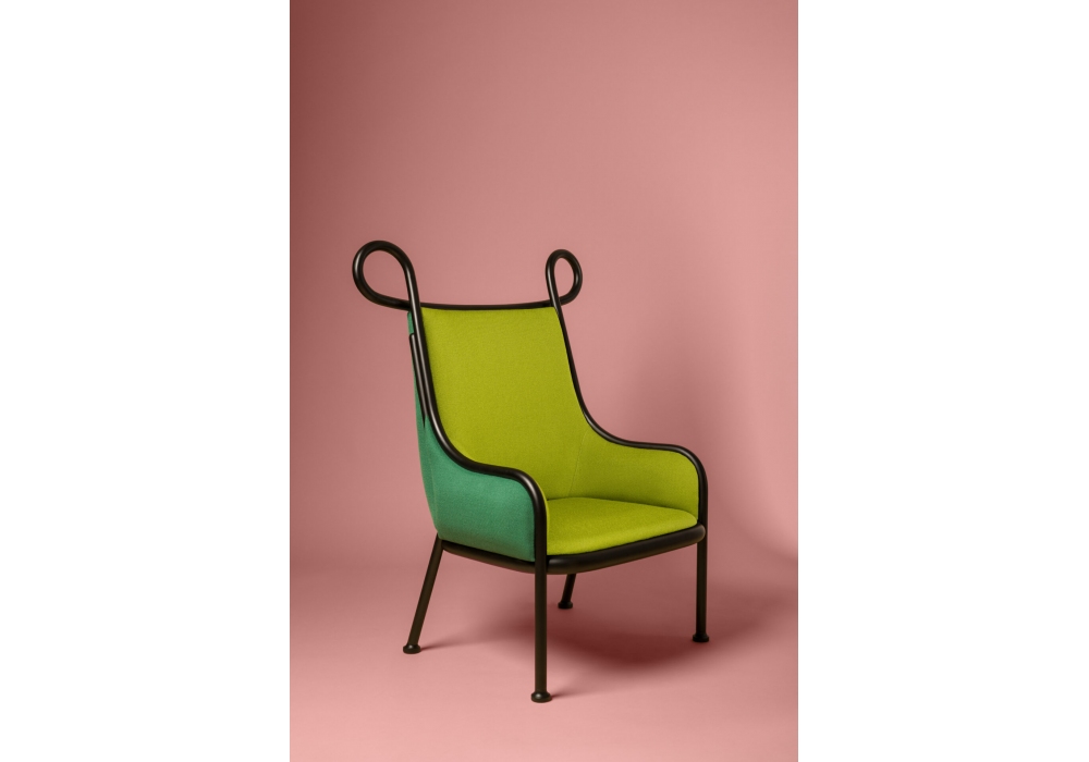 Mickey von India Mahdavi für Gebrüder Thonet Vienna entworfen, ist ein Loungesessel mit Struktur aus gebogener Buche. Sitz und Rückenlehne gepolstert mit Stoff- oder Lederbezug. Erhältlich in verschiedenen Ausführungen.