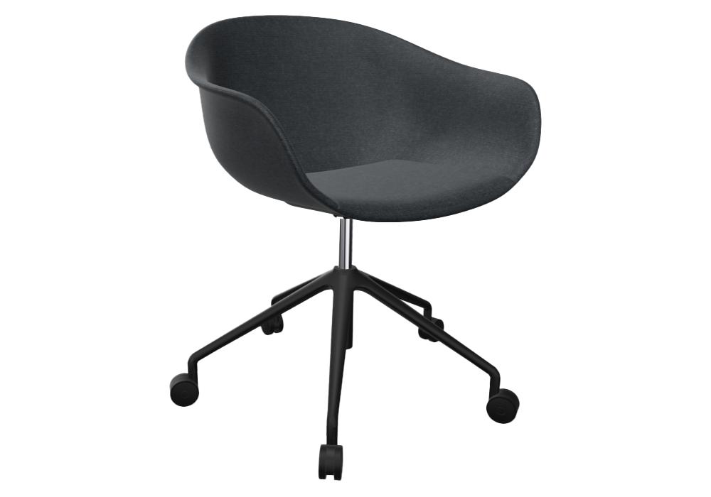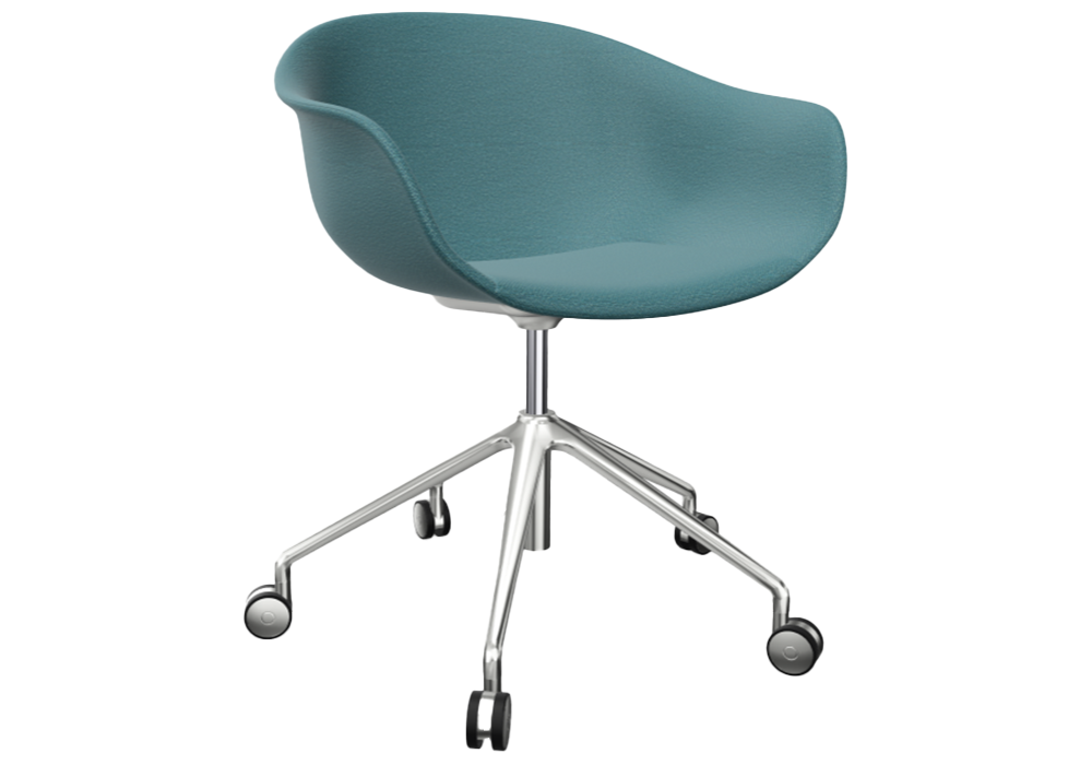 Next von Piergiorgio Cazzaniga für Andreu World entworfen, ist ein Drehsessel mit zentraler Aluminiumbasis mit 5 Rädern und pneumatischer Höhenverstellung. Polsterung in verschiedenen Stoffen, Leder oder Kunstleder.