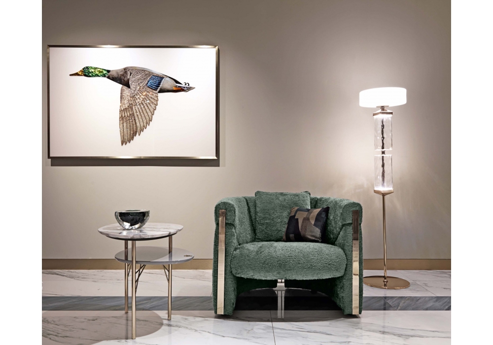 Petra von Alessandro La Spada für Visionnaire entworfen ist ein Sessel mit Polsterung aus Polyurethan und Stoffbezug. Rückenlehne und Armlehnen verziert mit vertikalen Strukturelementen aus Stahl mit lackierter Oberfläche. Außenstruktur mit Mosaikmuster und Paspeln mit schwarzem Lederbezug. Petra ist erhältlich in verschiedenen Ausführungen.