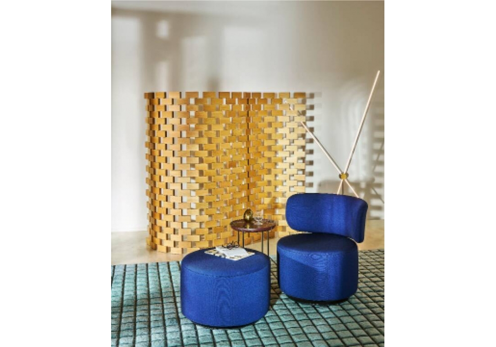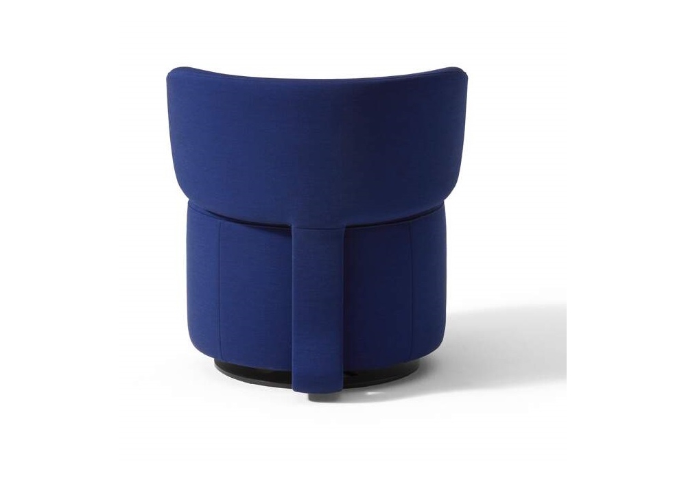 Tamburound von Barber Osgerby für Cassina entworfen, ist ein Sessel mit Aluminiumhalterung, drehbarem Sitz und Rückenlehne mit unabhängiger Bewegung und Polsterung aus Stoff oder Leder. Auch mit stoffbezogener Aluminiumhalterung erhältlich.