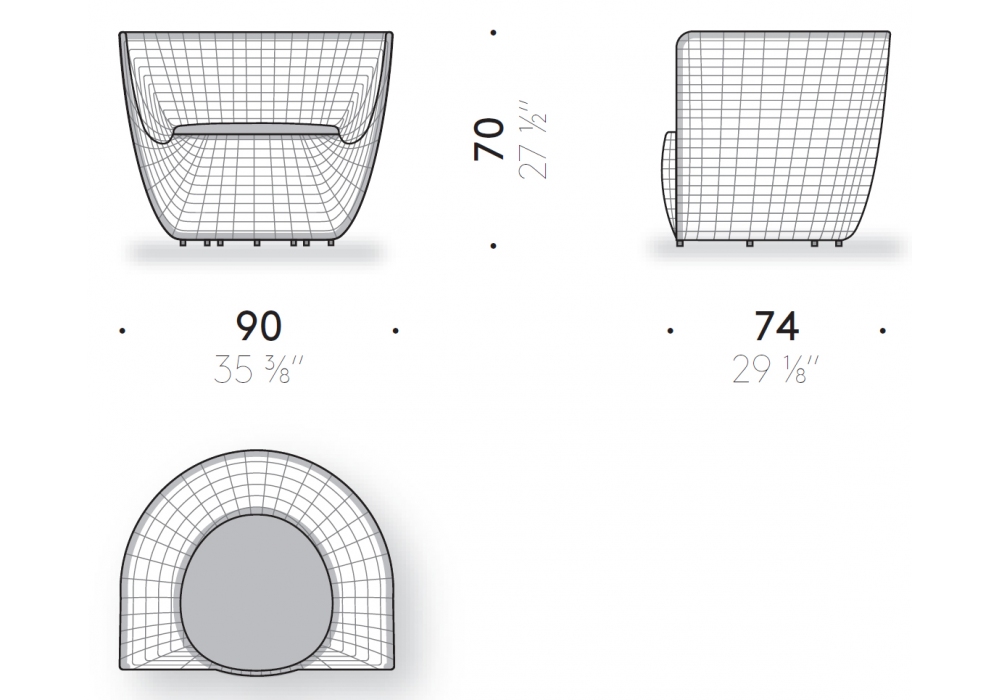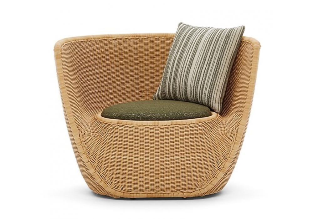 Afternoons von Omi Tahara für Depadova entworfen ist ein Outdoor-Sessel mit Aluminiumrahmen und Schale aus honigfarbenem extrudiertem PVC-Geflecht und Polsterung aus Polyurethanschaum und Polyesterwatte. Der Bezug besteht aus wasserabweisendem Canvas und ist in verschiedenen Ausführungen erhältlich. Die Füße bestehen aus thermoplastischem Material.
