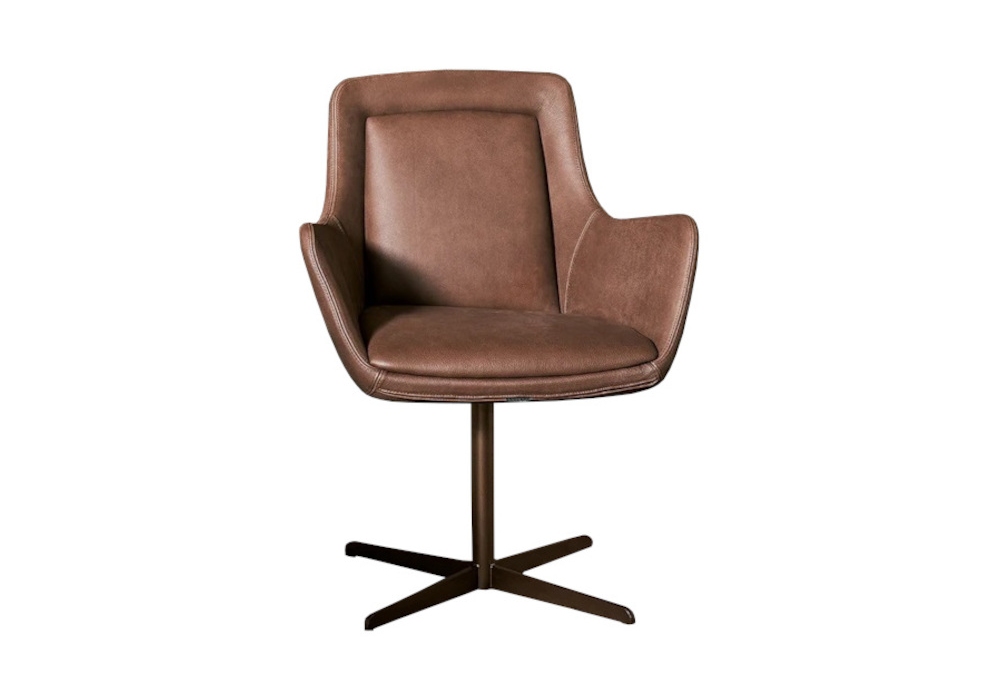 Newton Low von Bonaldo Lab für Bonaldo entworfen, ist ein Sessel aus Stahl, Drehgestell, gepolsterter Sitzfläche und Rückenlehne mit Stoff- oder Lederbezug. Auch in der zweifarbigen Version und mit zwei Bezügen erhältlich, Sitzfläche aus Stoff, Vorderkissen aus Leder.