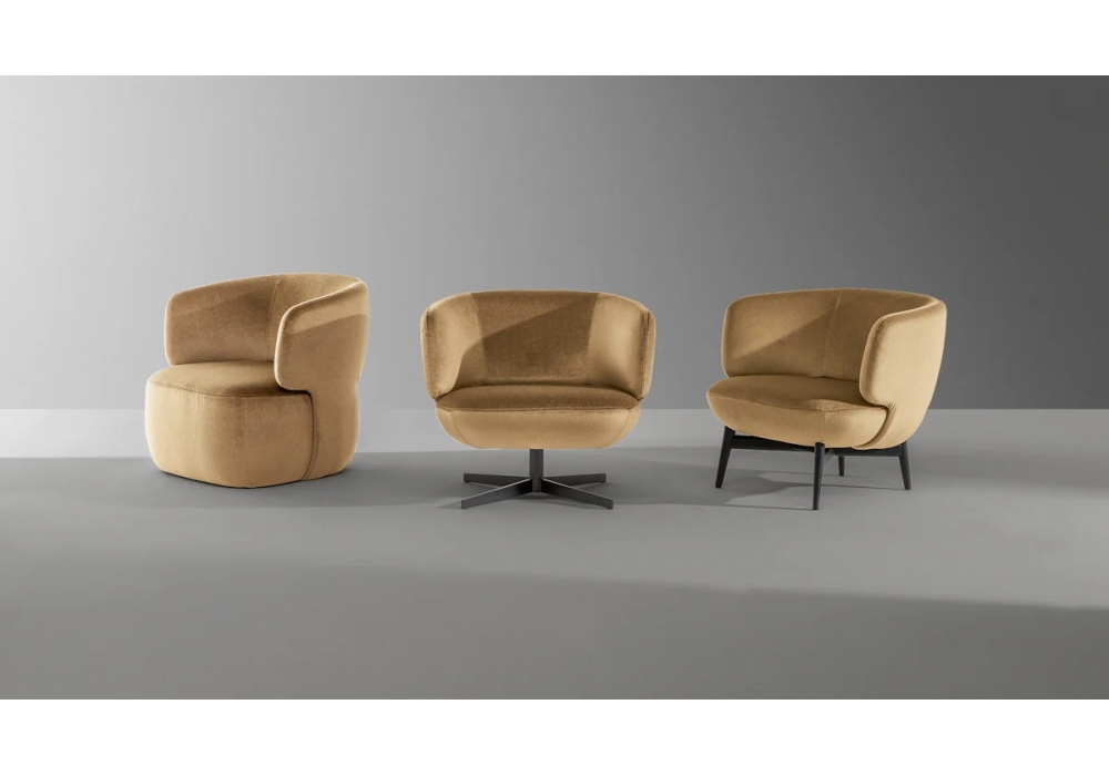 Doge Wood von Mauro Lipparini für Bonaldo entworfen, ist ein Sessel mit innerer Metallstruktur, Massivholzbasis, gepolstertem Sitz und Rückenlehne mit Stoff- oder Lederbezug. Verfügbar in verschiedenen Ausführungen.