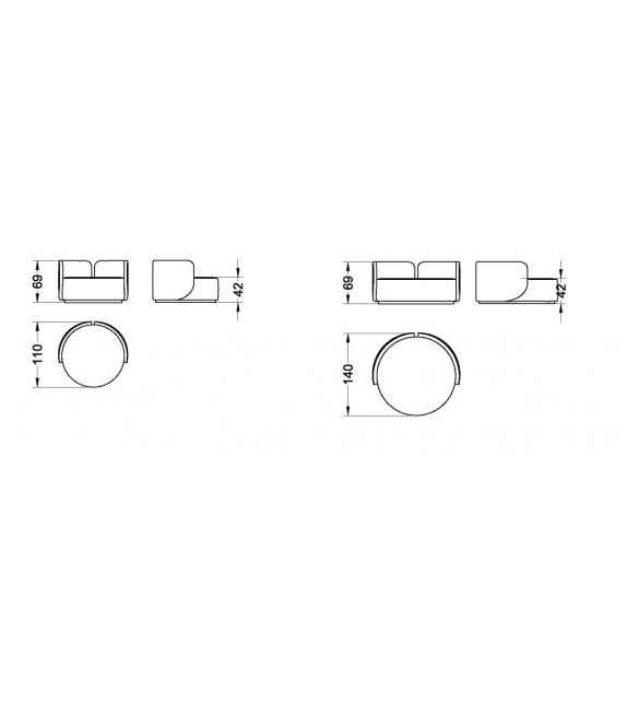 | Abmessungen | Ø 110 x H 69 cm; Ø 140 x H 69 cm. |