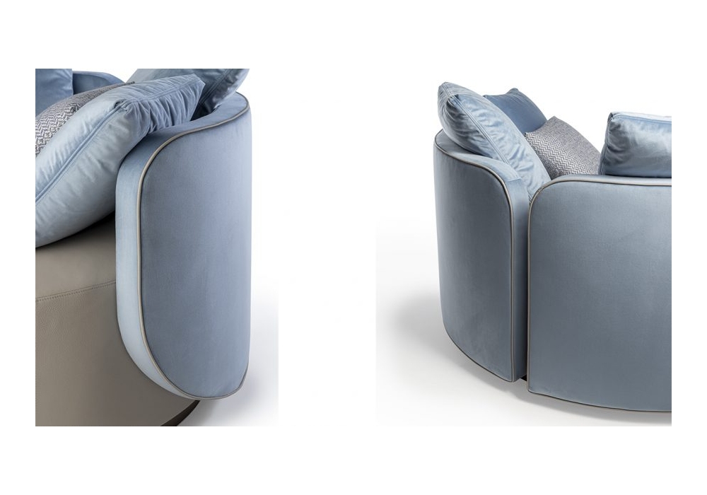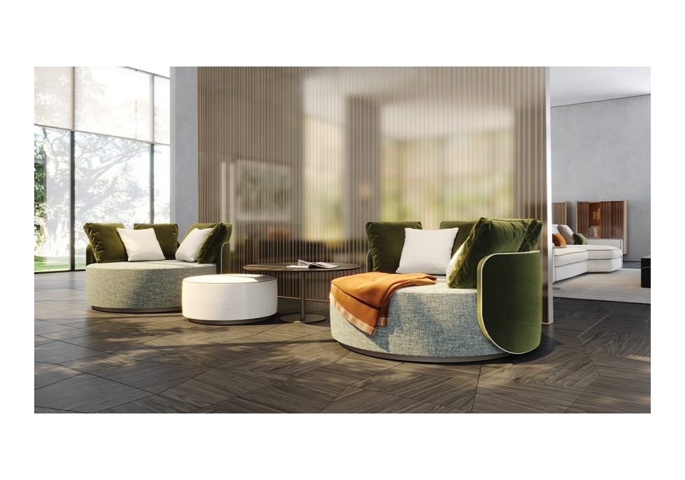 Hug von Emanuele Missaglia für Reflex Angelo entworfen, ist ein Drehsessel mit Bezug aus Leder oder Stoff. Basis in Bronzeausführung. Verfügbar in 2 Abmessungen.