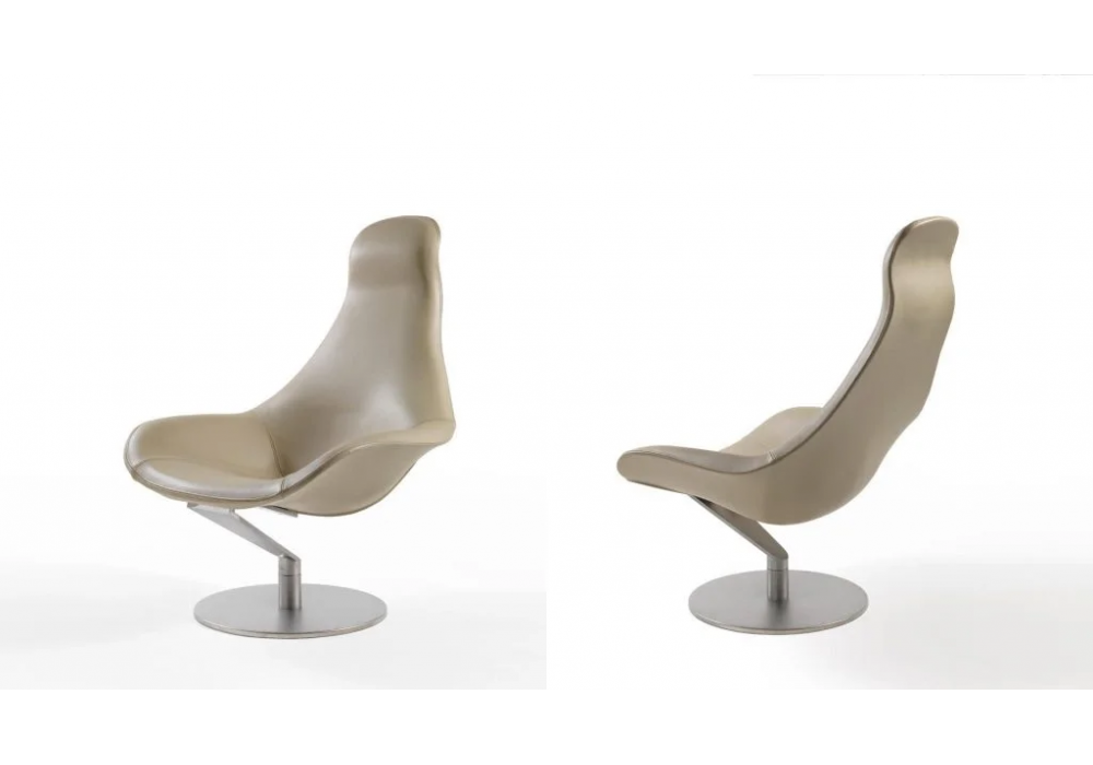 Zenith von Marco Cocco für Reflex Angelo entworfen, ist ein Sessel mit Bezug aus Leder oder Stoff. Runder und drehbarer Sockel aus satiniertem Messing, dunklem Messing, Titan oder dunklem Titan-Finish-Metall. Verfügbar in 2 Abmessungen.
