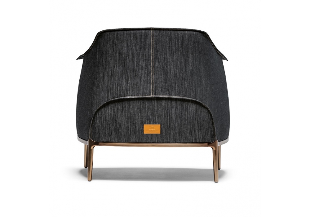 Archibald Denim Edition von Jean Marie Massaud Poltrona Frau ist ein Sessel mit Jacquard-Stoffbezug aus Bio-Baumwolle, der die typische Twill-Struktur von Denim aufweist und mit einer speziellen Waschung hergestellt wird, die ihn noch widerstandsfähiger und zum Beziehen von Polstermöbeln geeignet macht. Die Baumwolle ist GOTS-zertifiziert (Global Organic Textile Standard) und kann chemisch gereinigt werden. Basis aus antiker Bronze. Darüber hinaus ist der Sessel mit einem kamelfarbenen Cuoio Saddle Extra-Etikett verziert, auf dessen Rückseite das heißgeprägte Logo und die Worte „Archibald Denim Edition. Einzigartig, wie Sie“ aufgenäht sind. Einzigartig wie alle Stücke, die von den Handwerkern von Poltrona Frau handgefertigt werden.