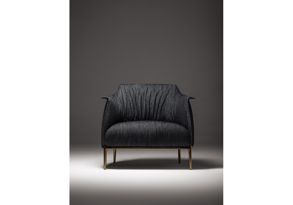 Archibald Denim Edition von Jean Marie Massaud Poltrona Frau entworfen, ist ein Sessel mit Bezug aus Bio-Baumwoll-Jacquardgewebe mit der typischen Twill-Struktur von Denim, hergestellt mit einer speziellen Waschung, die es noch widerstandsfähiger und für den Bezug von Polstermöbeln geeignet macht. Der Stoff namens Ever-Denim hat eine geflammte Kette, die ihn charakterisiert und ihm ein tiefes und dreidimensionales Aussehen bei Berührung und Optik verleiht, mit einem wohnlichen Gefühl, das vom „Stone Washed“-Effekt von Jeans inspiriert ist, und einer intensiven und eleganten marineblauen Farbe. Die Baumwolle natürlichen Ursprungs ist GOTS-zertifiziert (Global Organic Textile Standard) und kann chemisch gereinigt werden. Basis aus antiker Bronze. Darüber hinaus ist der Sessel mit einem kamelfarbenen Cuoio Saddle Extra-Etikett verziert, mit dem heißgeprägten Logo und den auf der Rückseite aufgenähten Worten „Archibald Denim Edition. Einzigartig, wie Sie“. Einzigartig wie alle Stücke, die von den Kunsthandwerkern von Poltrona Frau handgefertigt werden.