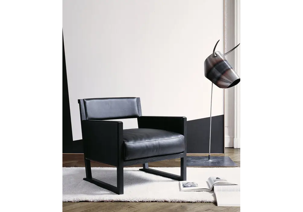 Musa von Antonio Citterio für Maxalto entworfen ist ein Sessel mit einer Struktur aus massiver Eiche und Polsterung aus verschiedenen Stoffen oder Ledern. Verfügbar in zwei Größen.