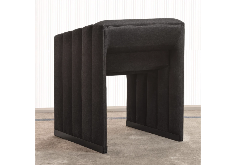 Wellen, von Toan Nguyen für Karl Lagerfeld Maison entworfen, ist ein Stuhl mit Holzinnenrahmen und nicht abnehmbarer Polsterung, die in verschiedenen Stoffen verfügbar ist.