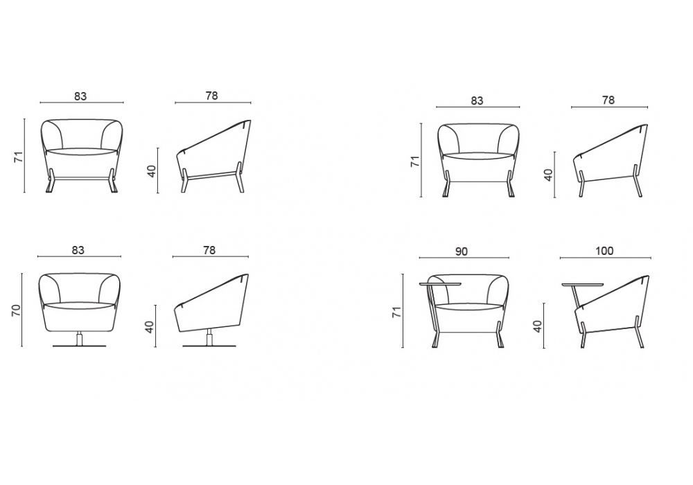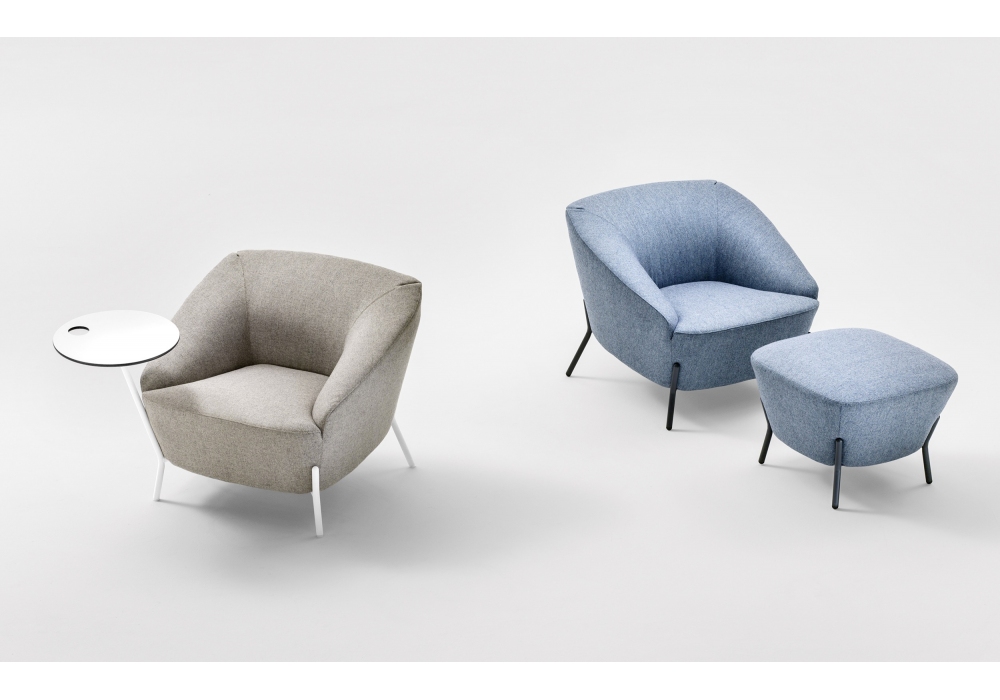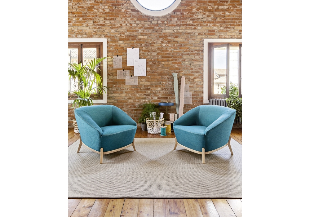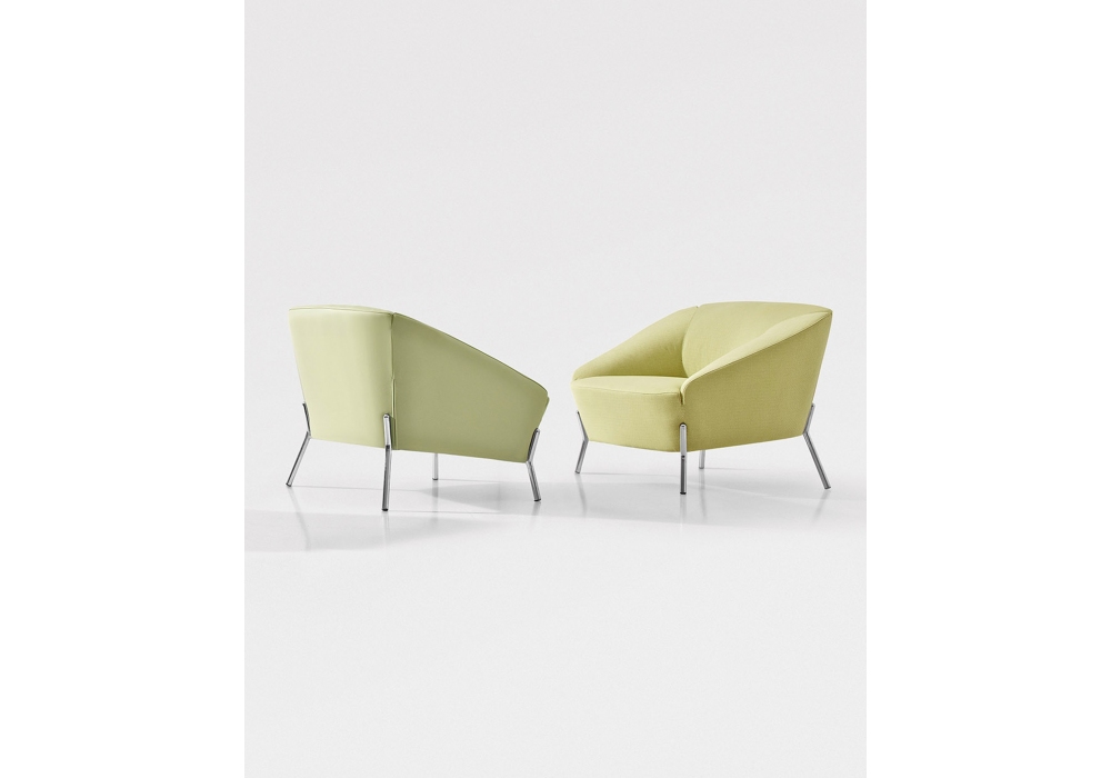 Nuvola von C/B Design für Milani entworfen, ist ein Sessel mit Polsterung aus feuerfestem expandiertem Harz, innerer Struktur aus Sperrholz mit elastischen Gurten und Stoff- oder Lederbezug. Verfügbar mit Holz- oder Metallbasis in mehreren Modellen.