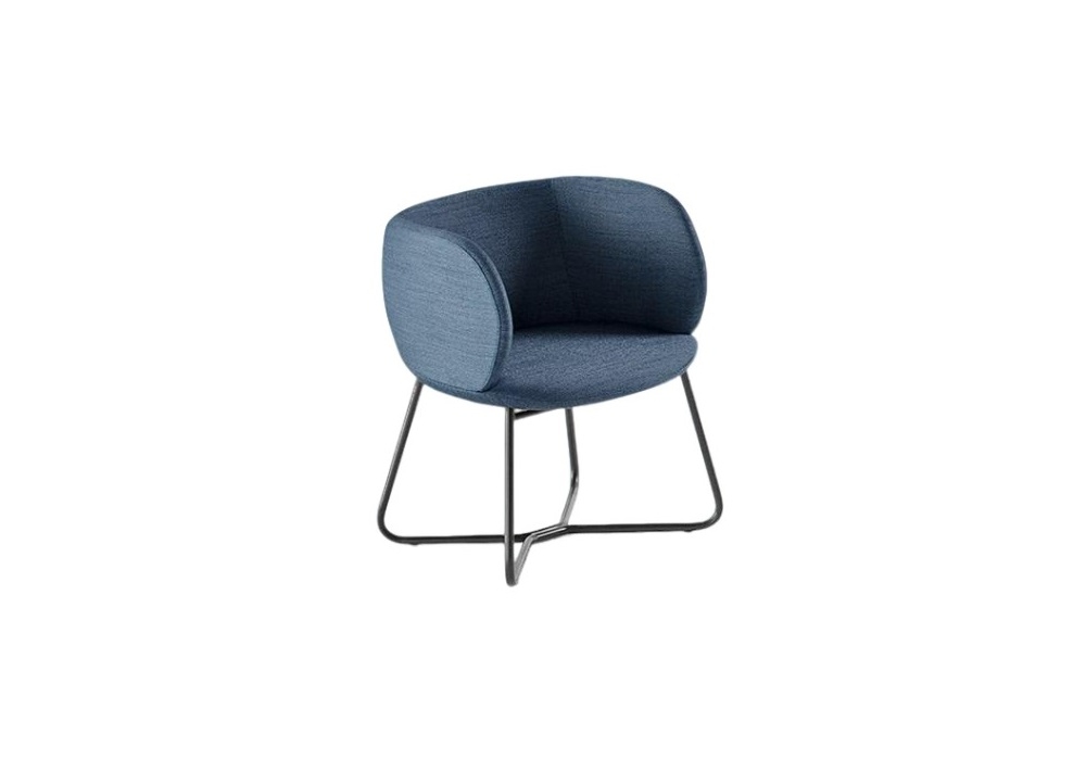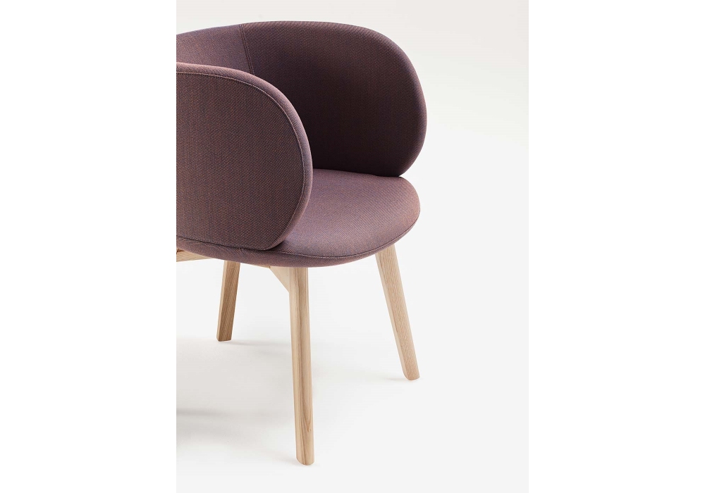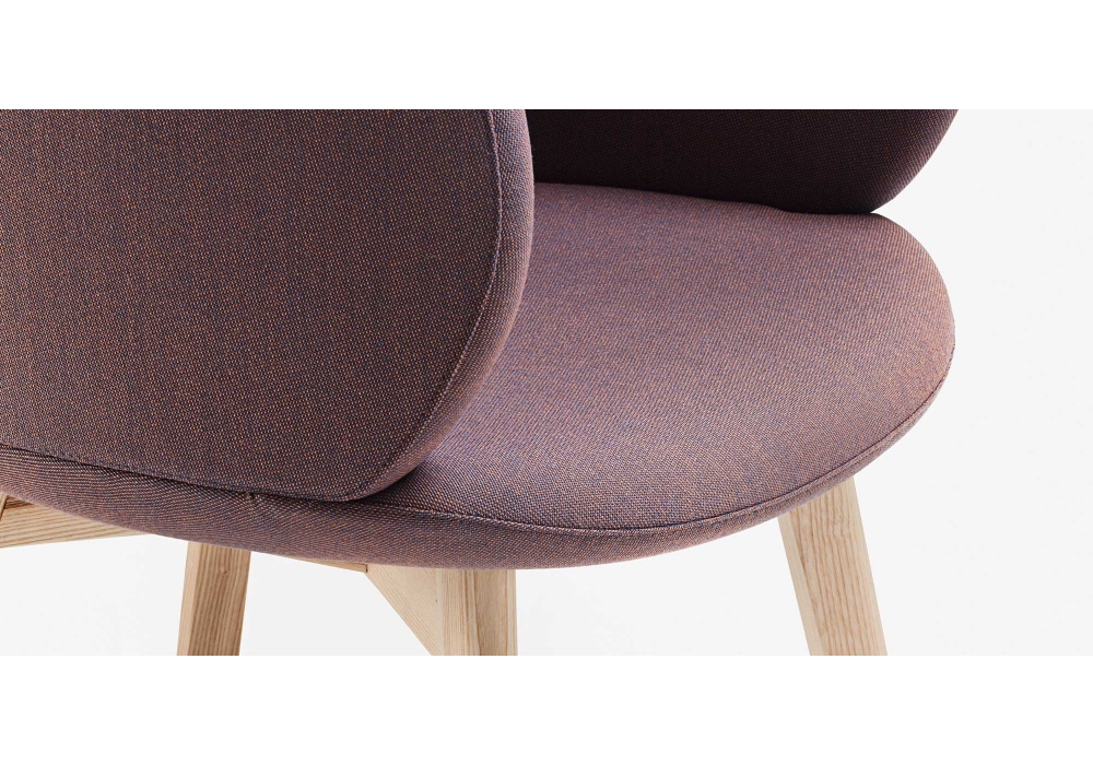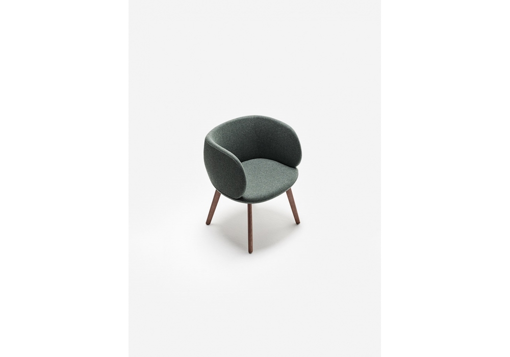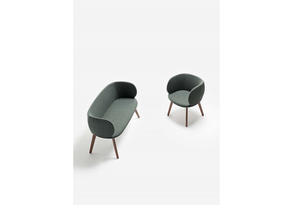 Beth von Alessandro Crosera & Elena Pistolato für Milani entworfen, ist ein Sessel mit Polsterung aus feuerfestem Schaumstoff und Bezug aus Stoff oder Leder. Verfügbar mit einem 4-beinigen Untergestell aus gebeiztem Holz oder einem Kufengestell aus Metallrohr.
