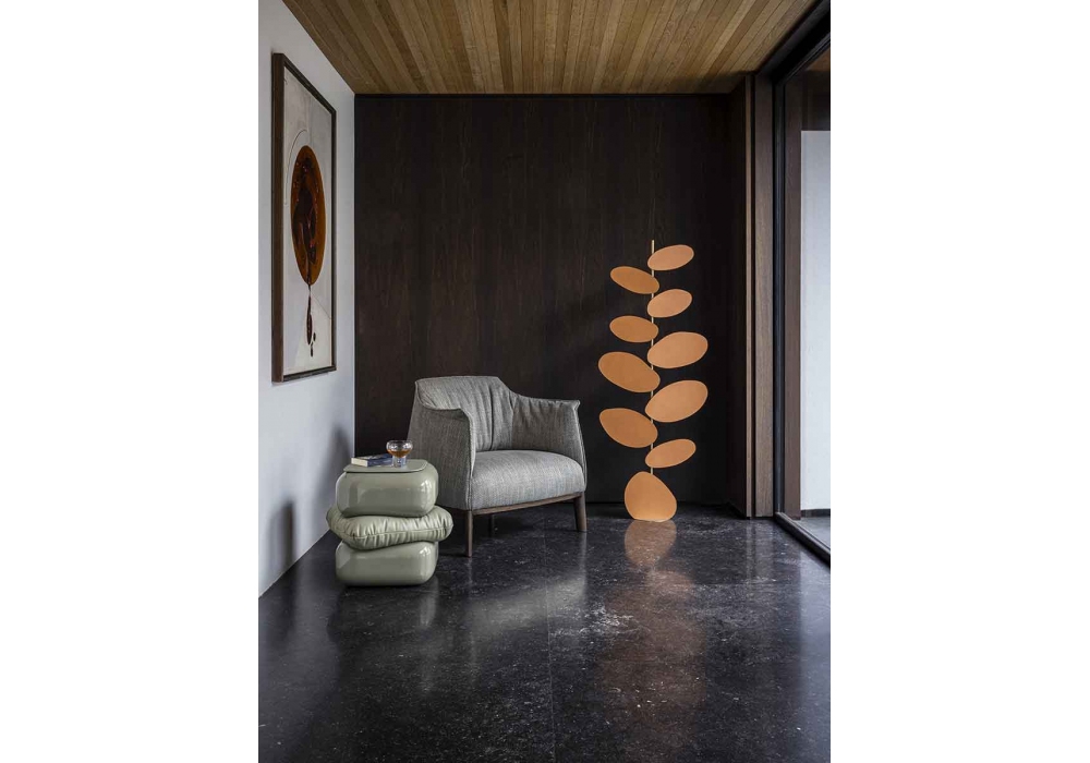 Archibald von Jean-Marie Massaud für Poltrona Frau entworfen, ist ein Sessel mit Bezug aus Pelle Frau® oder abnehmbarem Stoff. Die Ledervariante ist mit Kontrastnähten und die Stoffvariante mit Ton-in-Ton-Nähten versehen. Die tragende Struktur besteht aus Stahl, die Polsterung aus Polyurethanschaum, auf den in den Komfortzonen Polyesterwatte aufgebracht ist. Das Gestell und die vier Füße sind aus massiver Esche in verschiedenen Ausführungen. Die Federung des gepolsterten Sessels erfolgt durch elastische Gurte.