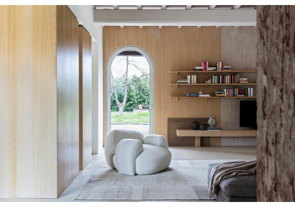 Mochi von Artur De Menezes für Mogg entworfen, ist ein einladender und extravaganter Sessel mit weichen, üppigen Formen, asymmetrischem Design und sanfter Wirkung, der zu entspannenden Momenten einlädt. Dank leistungsstarker Materialien und Stoffe erfüllen Form, Funktion und Komfort die Ansprüche modernen Wohnens. Erhältlich in bi-elastischen Stoffen gemäß Muster.