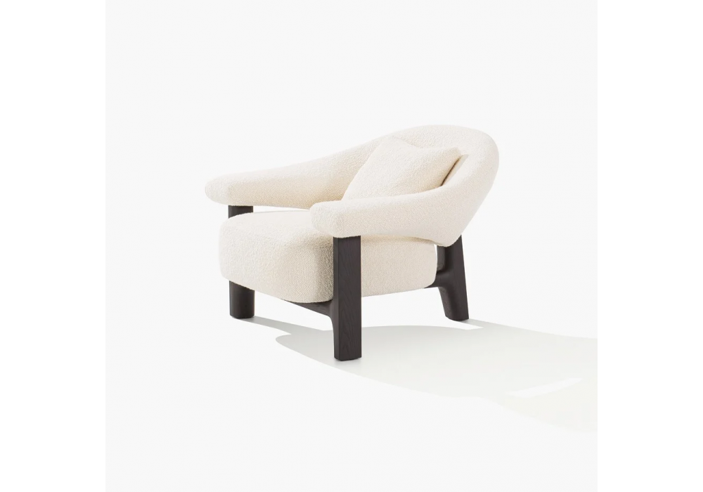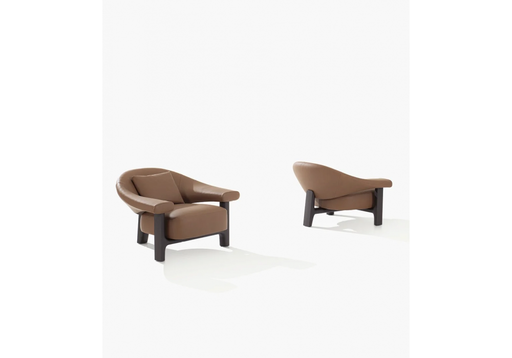 Owen von Jean Marie Massaud für Poliform entworfen, ist ein Sessel mit Massivholzrahmen in Spessarteiche oder Schwarzulme. Sitzfläche mit Rahmen aus Holz und Derivaten sowie Polyurethan unterschiedlicher Dichte, Rückenlehne aus Polimex® mit Polsterung aus Polyurethan unterschiedlicher Dichte. Rückenkissen aus Baumwollcanvas und Polyesterfaser mit Polyurethaneinlage. Unterbezug aus Baumwollcanvas. Abziehbarer Bezug aus Stoff oder Leder.
