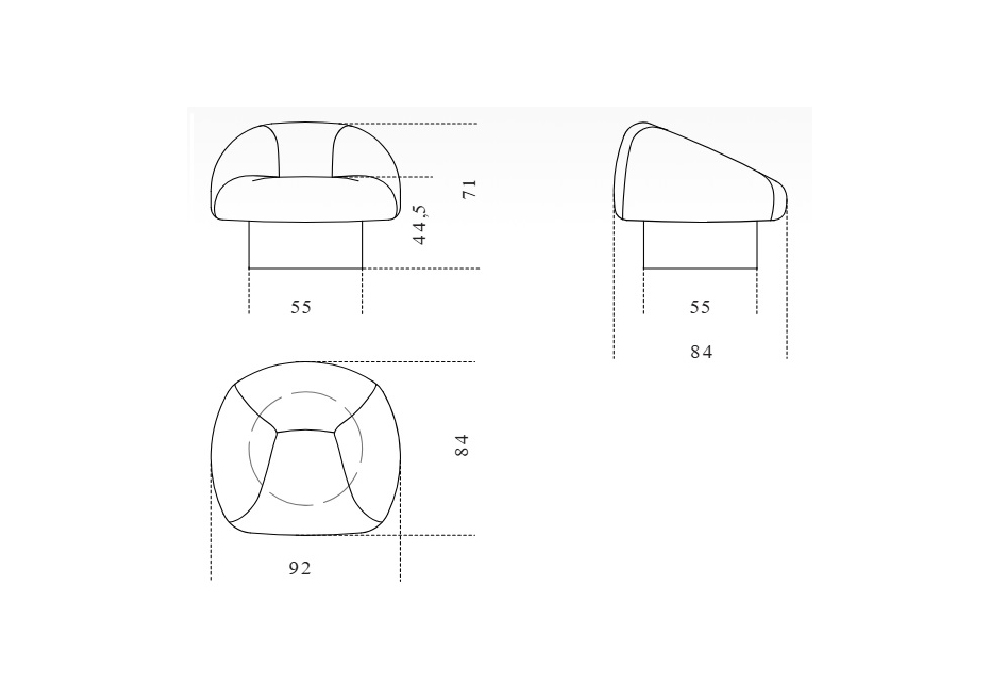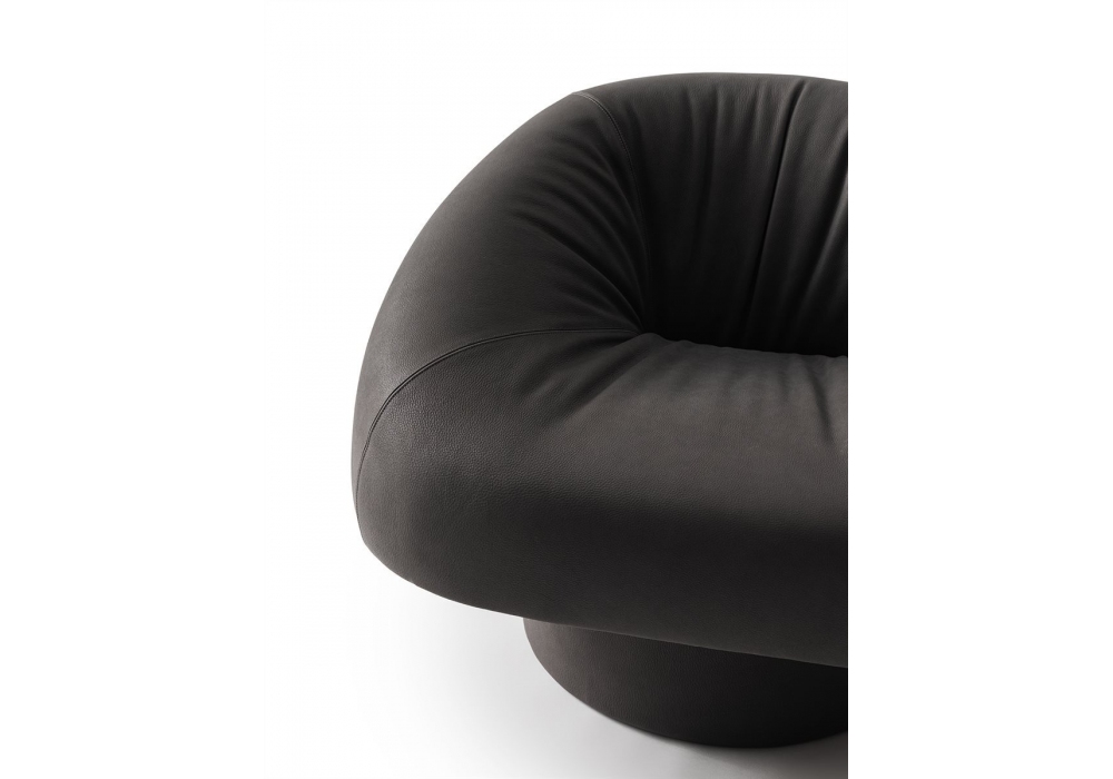 Olivia von Martina & Massimo Castagna für Gallotti&Radice entworfen, ist ein Sessel mit 180°-Drehung und Rückholfunktion. Die Innenstruktur besteht aus Holz und Nebenprodukten. Die Polsterung besteht aus unverformbarem Polyurethanschaum in verschiedenen Dichten und Polyesterfaser. Komplett mit Stoff oder Leder bezogen (siehe Muster).