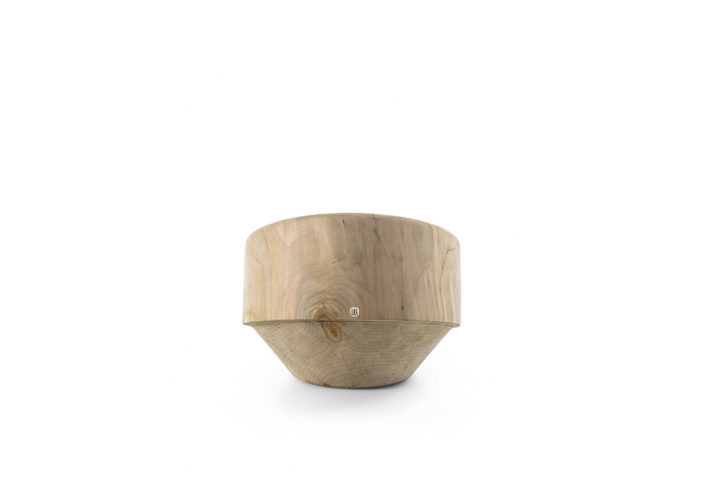 Palio von Ronald Sasson für Riva 1920 entworfen, ist ein Sessel aus massivem, duftendem Zedernholz, aus einem einzigen Block gearbeitet, ein skulpturaler Monolith mit einer ergonomischen Sitzfläche in Linie mit der Rückenlehne. Verfügbar in verschiedenen Ausführungen.