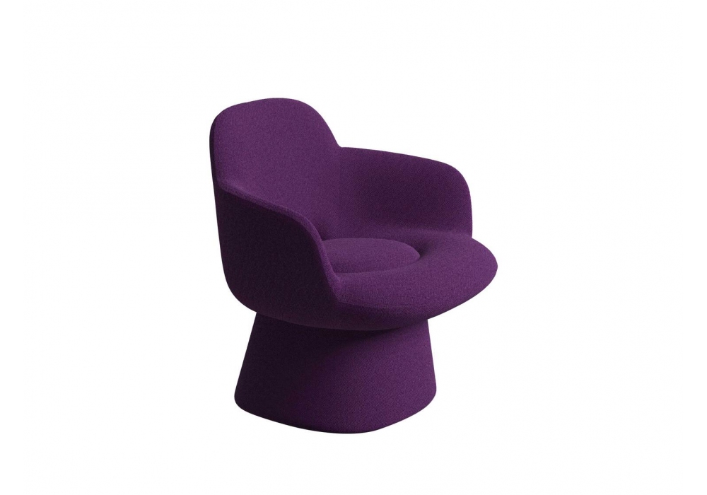 Kwado von Sebastian Herkner für Cappellini entworfen, ist ein fester oder drehbarer Sessel mit Stoff- oder Lederbezug. Erhältlich mit oder ohne Zubehör: Taschenhalterknopf aus schwarz lackierter Massivbuche. Drehbarer Tisch aus schwarz lackierter Massivbuche mit Edelstahlgestell.