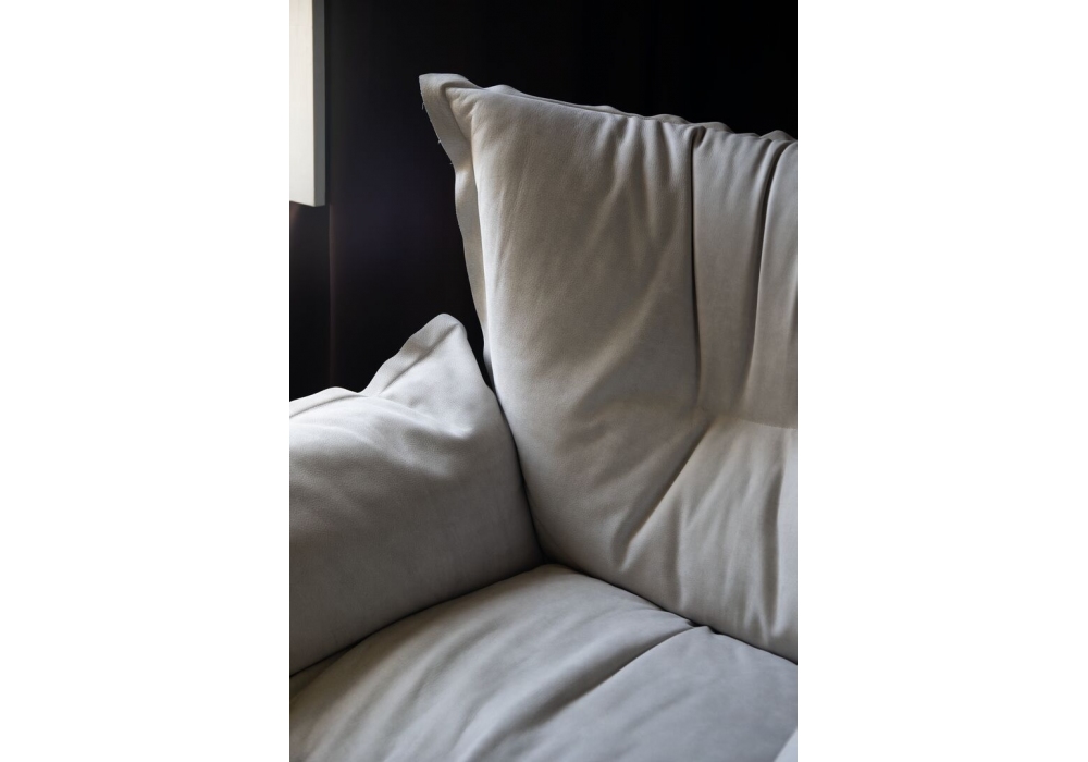 Ginevra von Paola Navone für Baxter entworfen, ist ein Sessel mit mehrschichtiger Tannenstruktur. Polsterung aus Polyurethanschaum unterschiedlicher Dichte und Drehfuß aus mattschwarz lackiertem Metall. Bezug nur in weichem Leder. Mit oder ohne Sitzpuff aus der gleichen Kollektion.