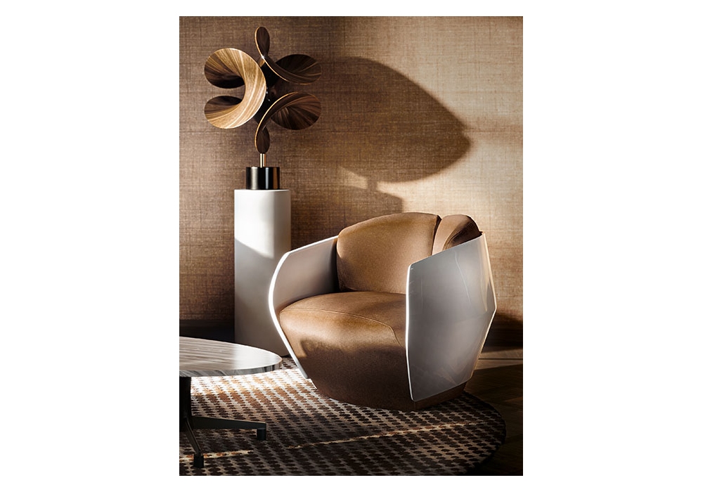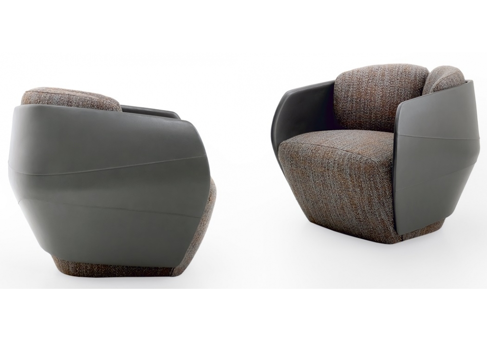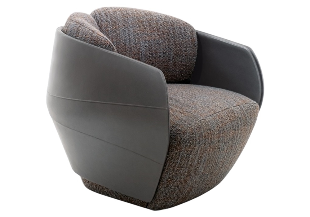 Lorelei von Giorgetti R&D entworfen, ist ein Sessel mit zwei Schalen aus starrem Polyurethan, die vollständig mit Leder bezogen sind. Die dynamischen und raffinierten Nähte sind sowohl ästhetisch als auch technisch. Die Sitzfläche und die Rückenlehne sind ebenfalls aus Leder.