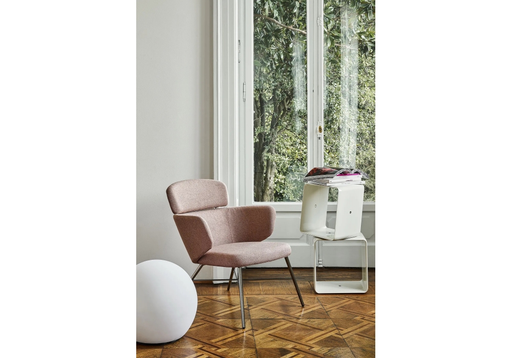 Kin Lounge von Radice Orlandini für Baleri Italia entworfen, ist ein Lounge-Sessel mit einem Gestell aus Stahlrohr, das mit Epoxidpulver in den angegebenen Farben lackiert ist. Rückenlehne aus kaltgeschäumtem, flexiblem Polyurethan. Nicht abnehmbarer Bezug aus Stoff oder Leder. Schwarze Polyethylenfüße.