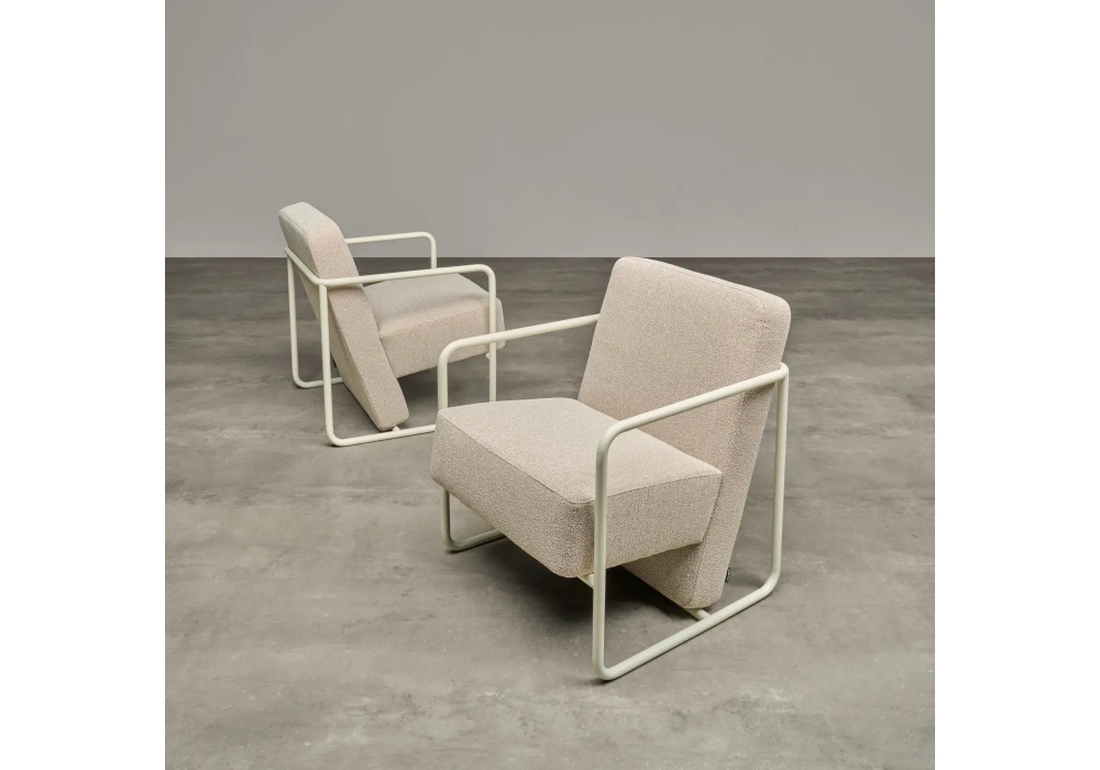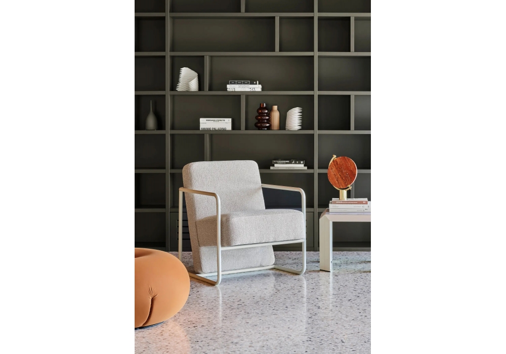 Spunta von Odo Fioravanti für Baleri Italia entworfen, ist ein Sessel mit sichtbarer Außenstruktur aus Stahlrohrprofilen, lackiert mit Epoxidpulvern in den angegebenen Farben. Innenstruktur aus Mehrschichtholz. Polsterung aus elastischem Polyurethanschaum mit unterschiedlichen Dichten. Bezug aus Stoff oder Leder.