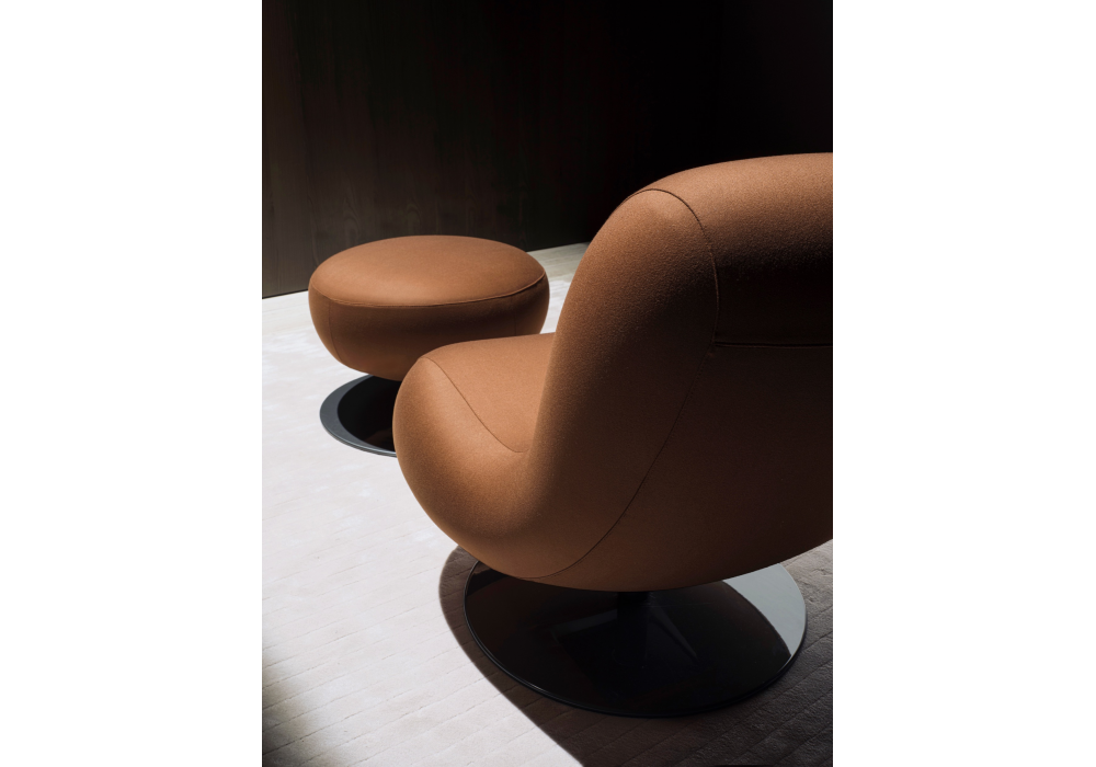 Bosco von Naoto Fukasawa für Molteni&C entworfen, ist ein Sessel, der von den sanften Formen der toskanischen Landschaft inspiriert ist. Die großzügigen Proportionen und die Polsterung mit variabler Dichte sorgen für Komfort und Ergonomie, während der nahtlose Bezug die einladende Ausstrahlung unterstreicht. Die dezenten Nähte folgen dem geschwungenen Profil, ohne die Oberfläche zu unterbrechen. Ausgestattet mit einem drehbaren Metallfuß mit zentraler Säule bietet er Bewegungsfreiheit und ist mit einer passenden Fußstütze für noch mehr Entspannung erhältlich.