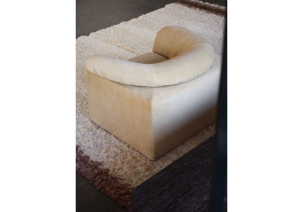 Butter, entworfen von Faye Toogood für Tacchini, ist ein Sessel, der zeitgenössische Ästhetik und informellen Komfort in perfekter Balance vereint. Gefertigt mit einer inneren Holzstruktur und einer Polsterung aus mehrdichtem Polyurethanschaum, bietet er Langlebigkeit, Stabilität und dauerhafte Qualität. Der Bezug, erhältlich in Stoff oder Leder, unterstreicht seine weichen, einladenden Formen. Er wurde so konzipiert, dass er sich den Bewegungen des Körpers natürlich anpasst, ohne eine starre Haltung vorzugeben, und verfügt über eine großzügige Sitzfläche sowie eine umhüllende Rückenlehne, die zum Entspannen einladen.