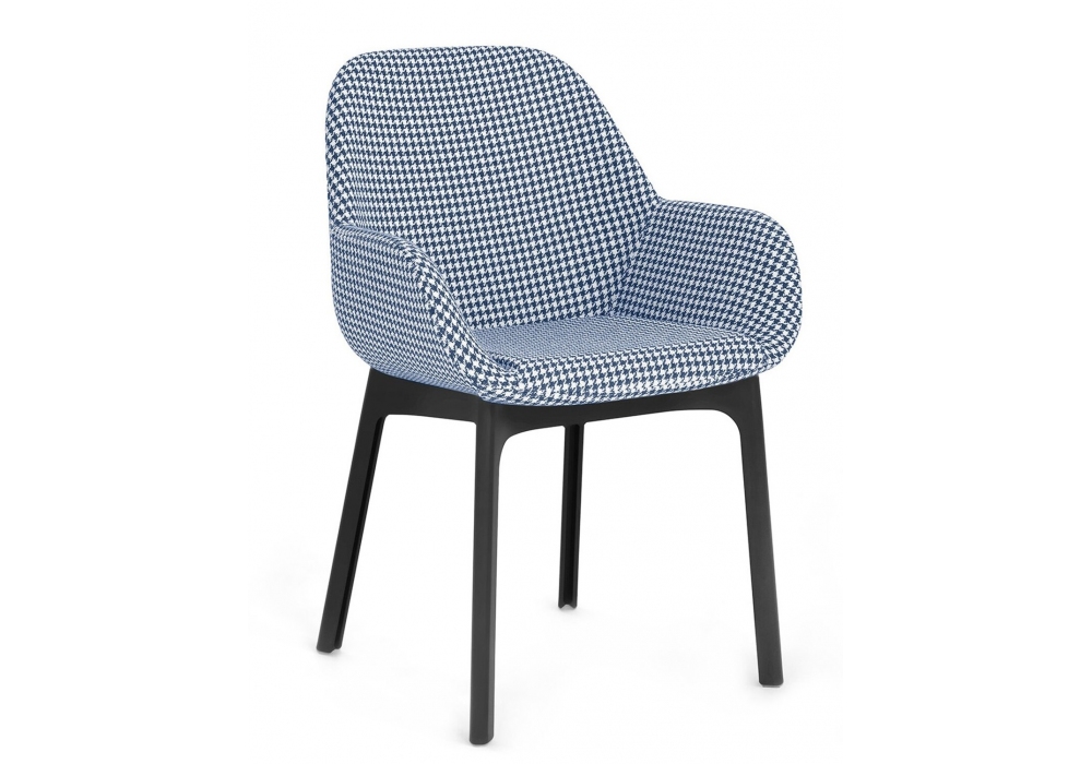 Clap von Patricia Urquiola für Kartell entworfen, ist ein Sessel mit Struktur aus durchgefärbtem thermoplastischem Technopolymer und mit Stoff bezogenem Sitz aus Polyurethan.