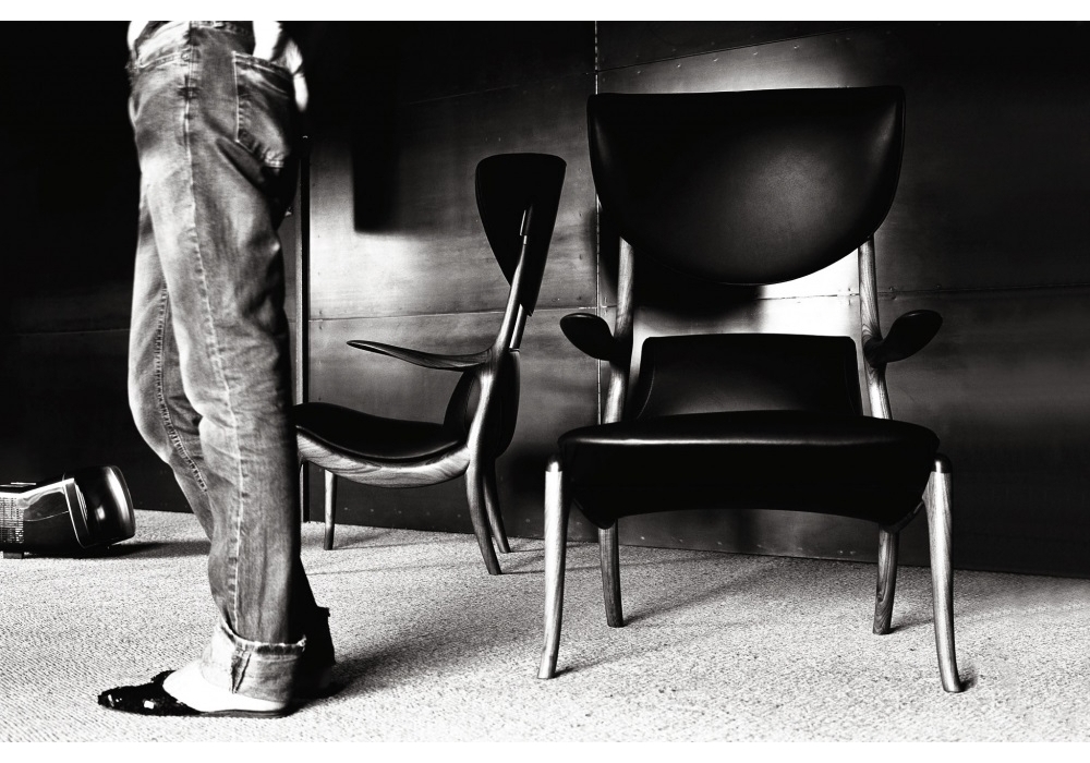 Star Trek by Ceccotti Collezioni is an armchair made in solid American walnut, seat and head-rest in upholstered curved plywood.